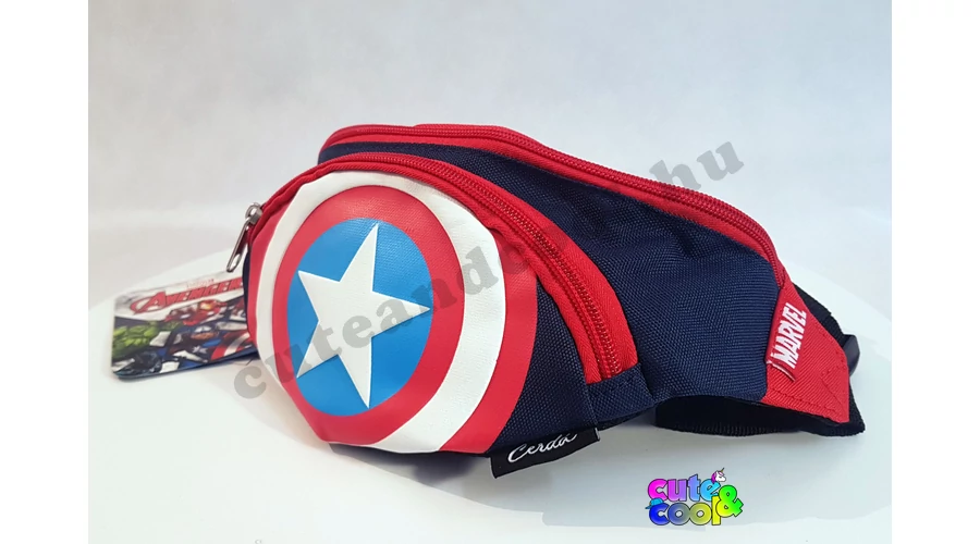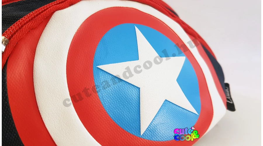 Különleges Avengers-Amerika Kapitány pajzsát megformáló övtáska, garantált siker minden Marvel és Bosszúállók rajongónál. Két rekeszes, állítható pánttal.