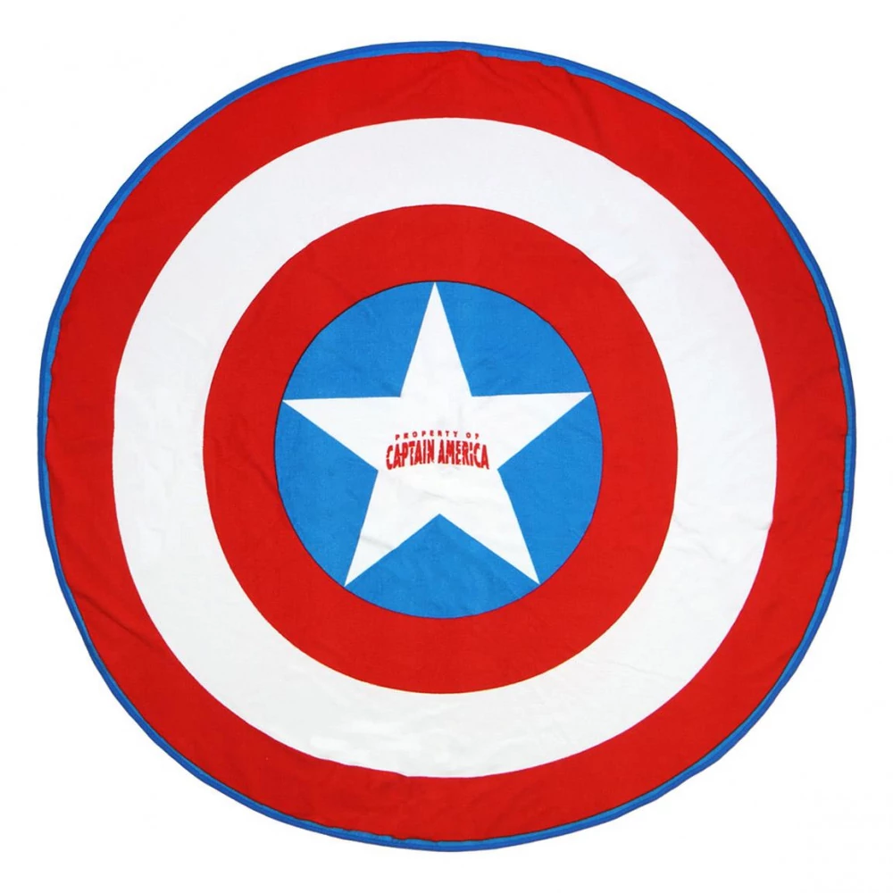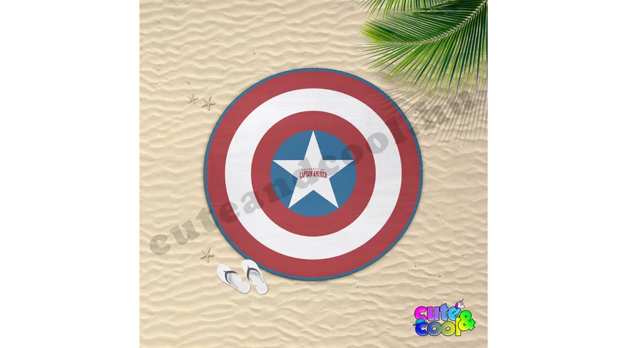 Kitűnő választás minden Marvel rajongónak ez a vagány kerek Amerika Kapitány törölköző strandra, tóparton, tengerparton, uszodában.