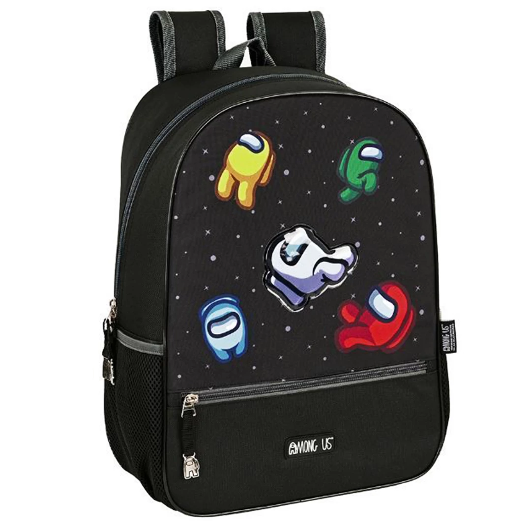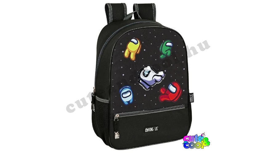 Vagány, masszív Among Us mintás iskolatáska. A táska 39 x 28 x 14 cm méretű. így kényelmesen belefér minden felszerelésed. A fekete táskán a hivatalos Among Us logó és 5 legénységi tag / játékos szerepel ahogy repkednek az űrben. Könnyen futó, figurás nyelvű cipzár nyitja a főrekeszt és elöl a zsebet is. A táska oldalain egy-egy hálós-gumis zseb is segít a pakolásban. A táska hátrésze és vállpántjai is vékonyan szivacsozottnak, vállpántjai állíthatóak, ohgy minnél kényelmesebb legyen a viselése. Vajon az imposztor lökte ki őket az űrbe? Vagy ő is köztük van?