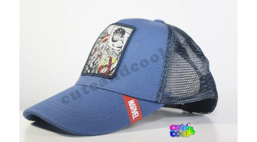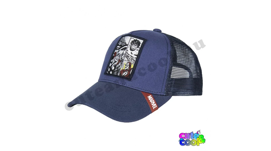 - Avengeres baseball cap for Marvel fan - mesh desing for good ventilation - Featuring Hulk, Thor, Ironman and Captaim America - Style: Baseball (curved slit) - Materials: 50% cotton, 50% polyester - Size: M, 58 cm head circumference - adjustable - Color: darkblue Gift idea for Avengers fans, boys, girls, for birthday, name day, summer holiday Officially licensed product