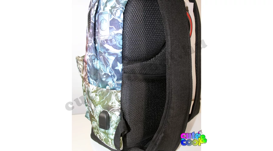 Ez a vagány Avengers hátizsák tökéletes választás iskolába, utazáshoz,kiránduláshoz. Nem csak azért, mert ergonomikus hátsórészének és szivacsos,állítható vállpántjainak köszönhetően tartja a gerincet és támasztja a derekat, hanem mert a beépített USB töltőjének segítségével a telefonodat is töltheted vele! A hátizsák egyterű és két belső zsebbel rendelkezik. Elején cipzáros nagy zseb.
