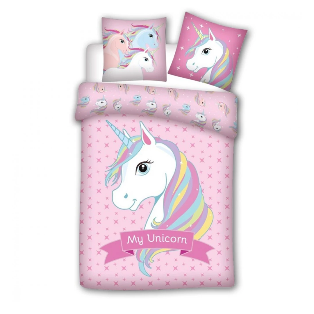 A beautiful pale pink microfiber blanket and pillow, a two-piece set that will make every unicorn lover's heart flutter. This adorable bedding set adorned with a cute unicorn pattern is the perfect choice for those who adore this cute and magical creature! The comfortable microfiber material offers the benefits of softness and comfort. The cute unicorn motif is guaranteed to bring a smile to your face! This two-piece unicorn bedding set can be an ideal gift for those who are passionate about unicorns and love cute decorations. Whether it's a birthday or name day, this blanket and pillow are sure to bring joy.