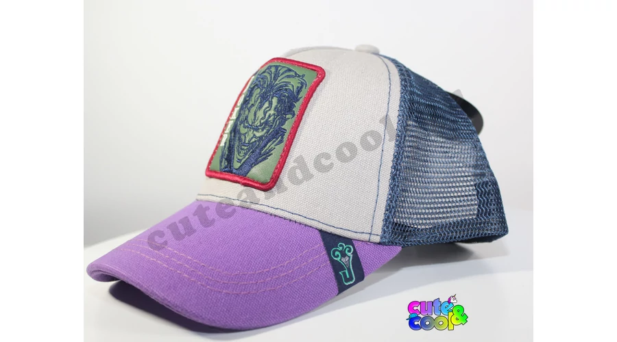 - Joker baseball cap for DC Comics fan - mesh desing for good ventilation - Featuring with Joker - Style: Baseball (curved slit) - Materials: 50% cotton, 50% polyester - Size: M, 58 cm head circumference - adjustable - Color: white, purple Gift idea for Batman fans, boys, girls, for birthday, name day, summer holiday Officially licensed product