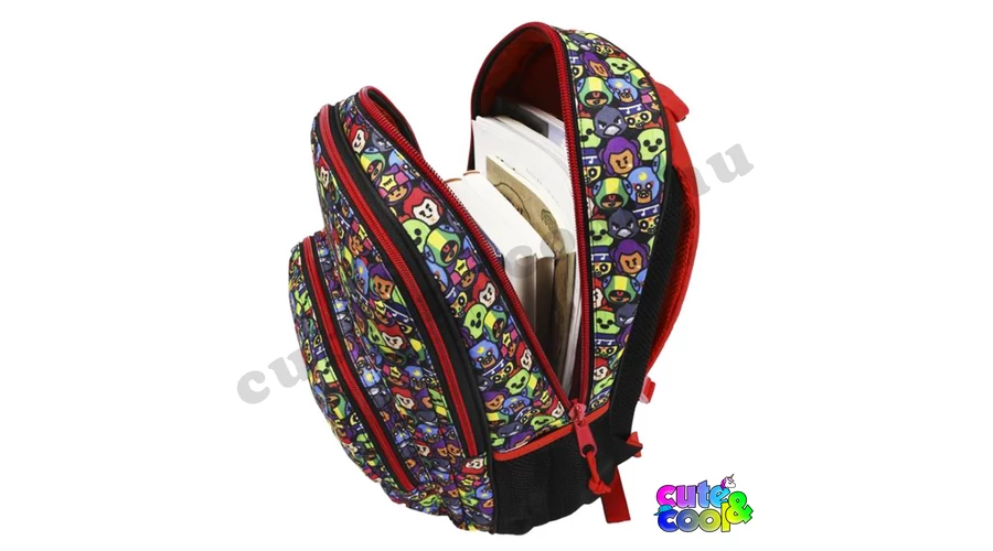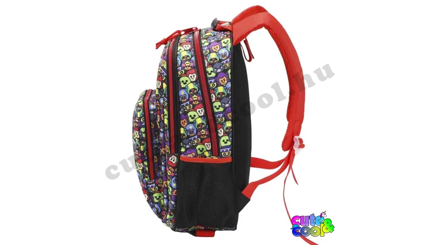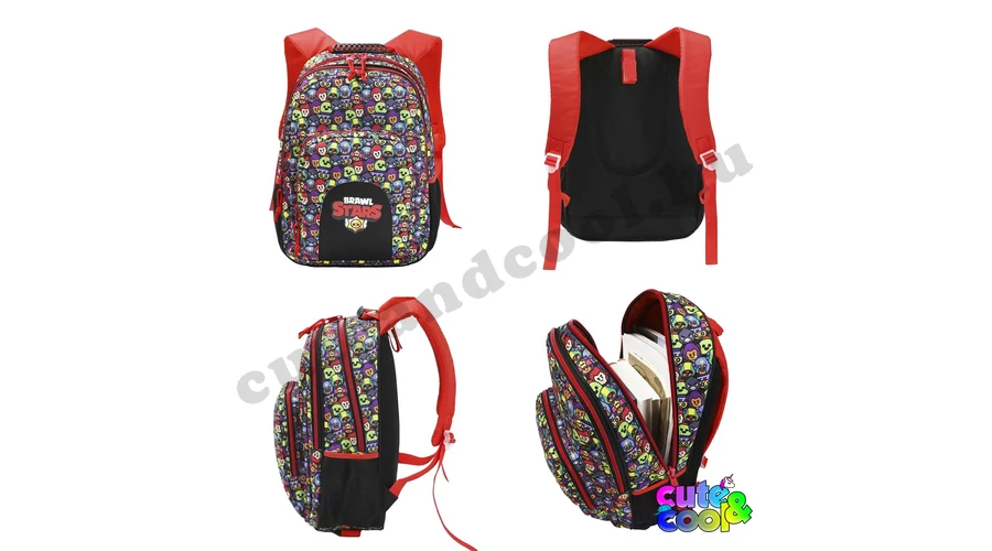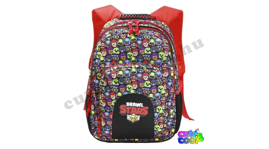 Szuper, masszív Brawl Stars ergonómiai iskolatáska. A táskán a hivatalos Brawl Stars logó és a Brawl Stars hőseinek arcát láthatod, többek között olyan kedvenceket mint; Leon, El Primo, Colt, Poco, Crow, Spike, Sandy és Shelly. Az iskolatáska anyaga kimondottan erős, cipzárjai nagyméretűek és könnyen kezelhetőek, a tetején lévő fogantyú ergonomikus, hogy ne vágja a kezet. Az iskolatáska 3 rekeszre van felosztva, így a tankönyveket és füzeteket kényelmesen tudod elpakolni és nem csúszkálnak össze-vissza. A táska oldalain egy-egy gumis kulacstartó zseb található. Ennek a nagy 41 x 28 x 13 cm-es iskolatáskának háta ergonomikus kialakítást és légáteresztő szivacsozást kapott, hogy kényelmes legyen a használata, vállpántjai szivacsozottak és állítható a hossza. Egy Braw Stars rajongónak ez egy tökéletes választás!