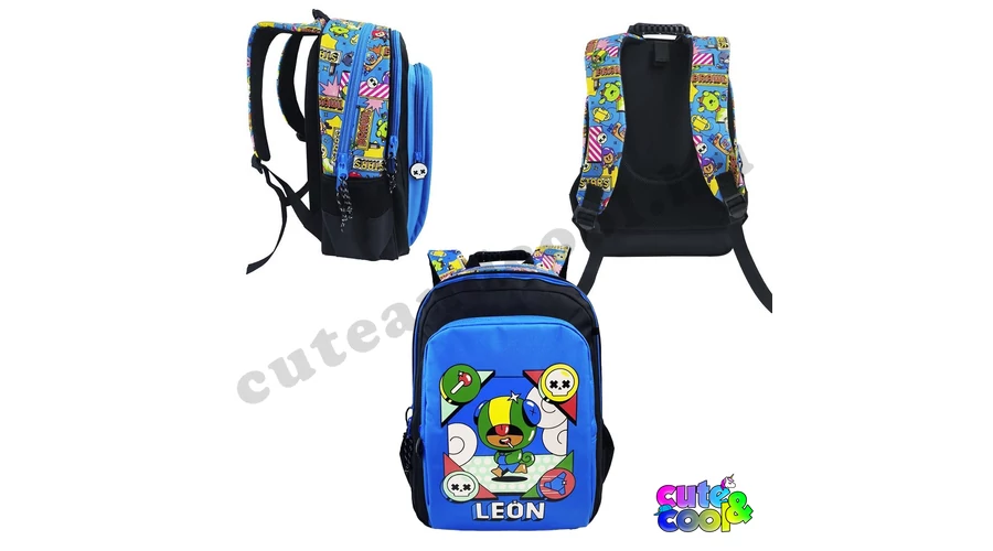 Szuper, masszív Brawl Stars ergonómiai iskolatáska. A táskán a hivatalos Brawl Stars ikonok és a Brawl Stars egyik legmenőbb arca, Leon látható. Az iskolatáska anyaga kimondottan erős, cipzárjai nagyméretűek és könnyen kezelhetőek, a tetején lévő fogantyú ergonomikus, hogy ne vágja a kezet. Az iskolatáska 3 rekeszre van felosztva, így a tankönyveket és füzeteket kényelmesen tudod elpakolni és nem csúszkálnak össze-vissza. A táska oldalain egy-egy gumis kulacstartó zseb található. Ennek a nagy 42 x 29 x 13 cm-es iskolatáskának háta ergonomikus kialakítást és légáteresztő szivacsozást kapott, hogy kényelmes legyen a használata, vállpántjai szivacsozottak és állítható a hossza. Egy Braw Stars rajongónak ez egy tökéletes választás! Ez a táska tökéletes és kényelmes választás minden kisiskolás, iskolakezdő számára ha a sok-sok iskolakönyvét mindennap hordozgatja!