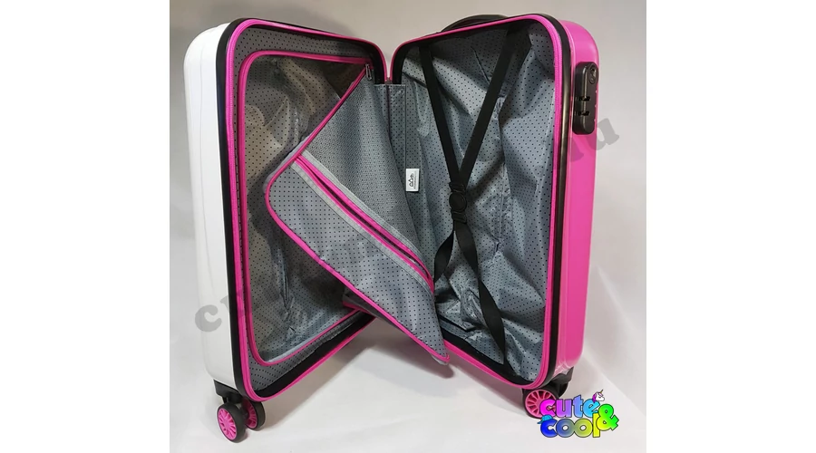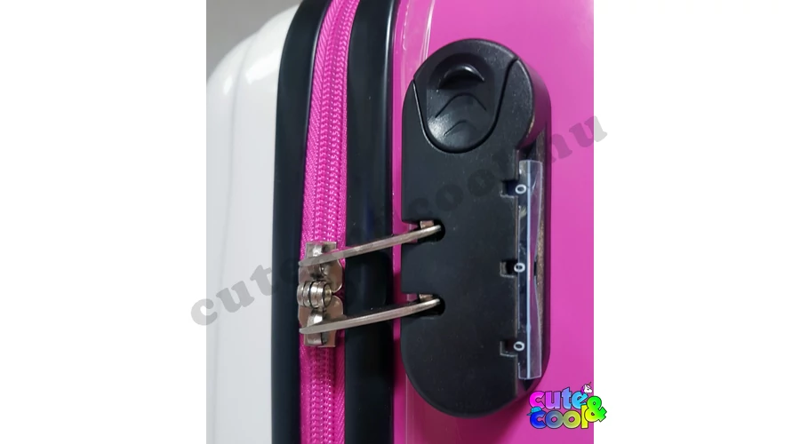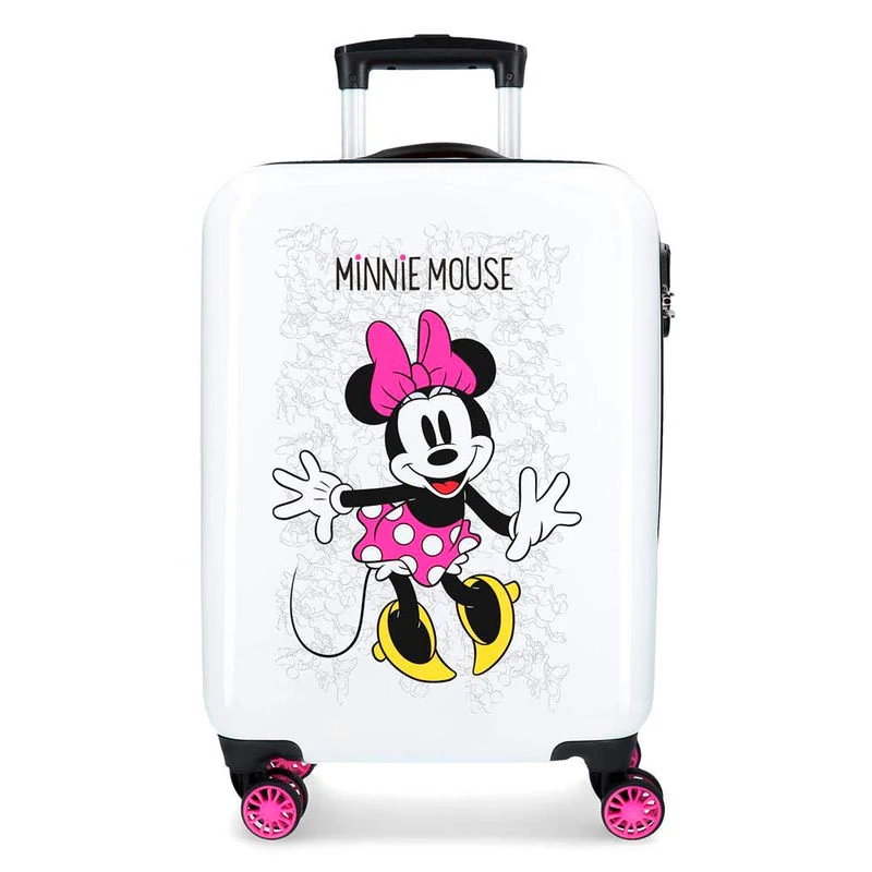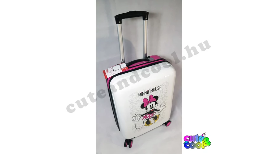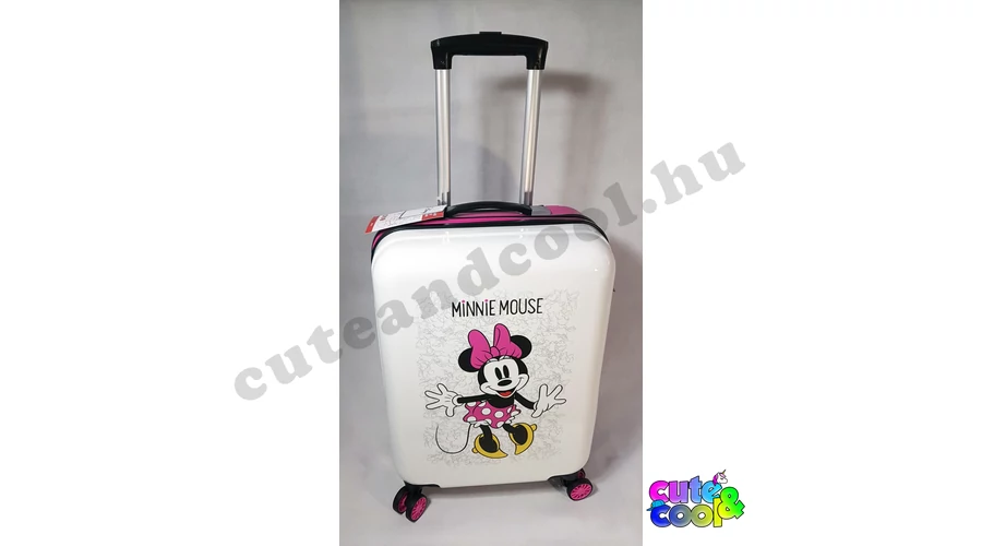 Ingyenes szállítás! Utazz kedvenceddel, Minnie Mouse-al! Négy kerekű, gurulós, kemény falú bőrönd, teleszkópos troli húzókarral. Kétoldalas belső kialakítás, egyik oldalon gumis leszorítópánt, másikon cipzáras tárolórész plusz egy cipzáros hálós zseb. Számkombinációs rögzített zárszerkezet, hogy értékeid biztonságban legyenek, de még kis lakatnak is kialakították a helyét a cipzárakon.