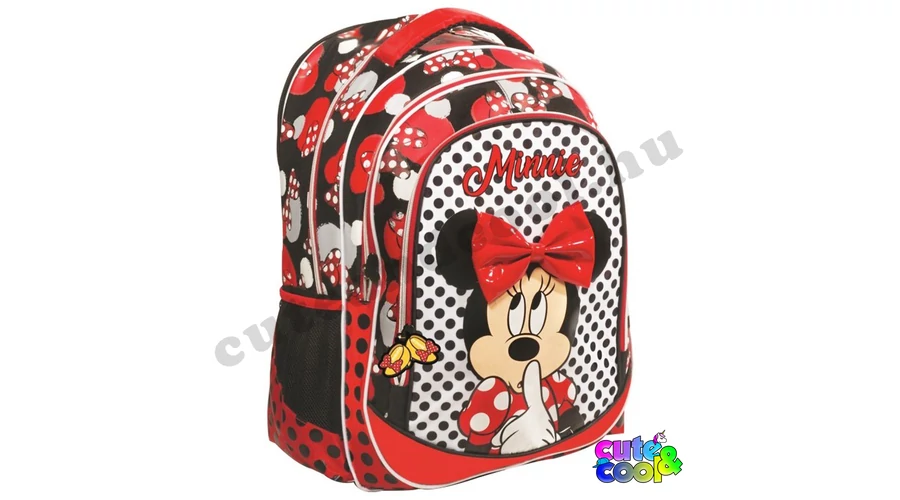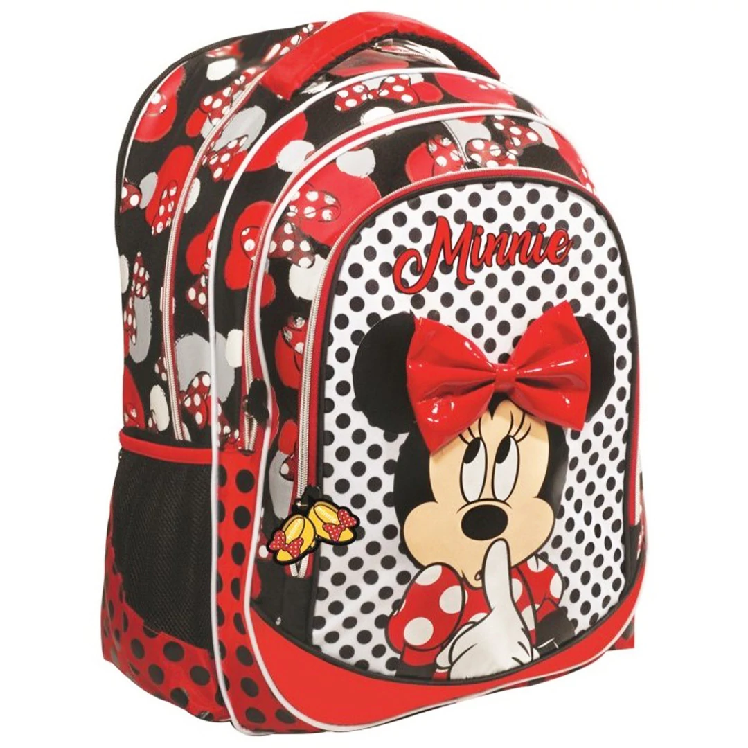 - big-sized Minnie Mouse school bag - ergonomic design - premium quality - massive, durable, reliable - 3 compartments with zip closure - water bottle mesh pockets on the sides - ergonomic, breathable padded back - adjustable padded shoulder straps - strong handle - bow design Excellent choice for elementary school!