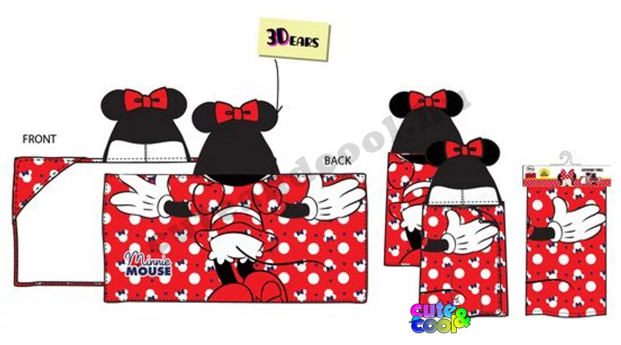 Kitűnő választás minden Disney rajongónak ez a csajos Minnie Mouse pamut strandtörölköző kapucnival strandra, tóparton, tengerparton, uszodában.