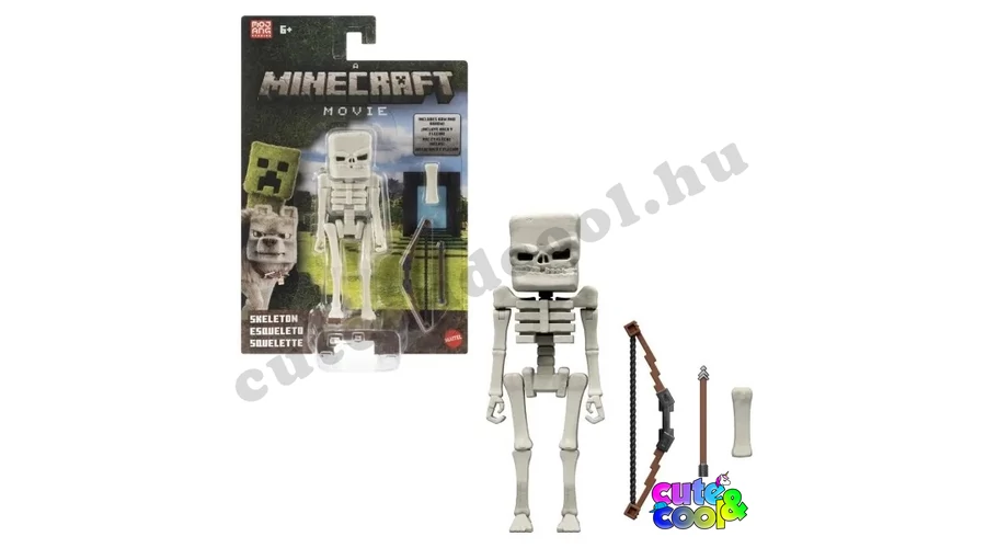 Az Egy Minecraft film Mob szereplőjét Skeletont most figura formájában haza is viheted! Tartozik hozzá egy csont és egy íj is, így várja a kalandokat veled.  A játékfigura kezei lábai mozgathatóak, így a kezébe teheted az íjjat és a csontot is.