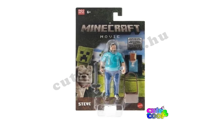Az Egy Minecraft film főszereplője Steve-et most figura formájában haza is viheted! Steve a kedvenc kék pucsijában farmerban várja a kalandokat veled.  A játékfigura kezei lábai mozgathatóak, így a kezébe tehed a kardot, a táskáját és a csirkecombot is amivel farkast is tudsz szelídíteni.