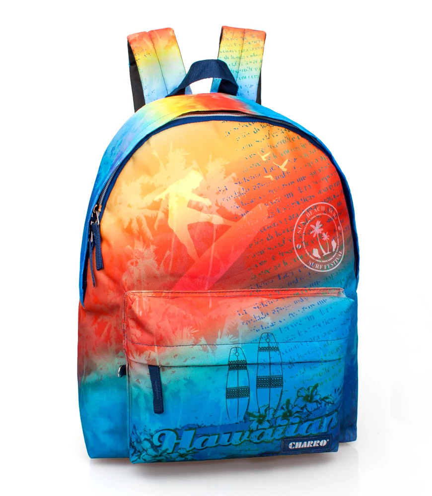 - big size Hawaii design backpack - high quality - massive, durable, reliable - 2 zipped compartments - spongy backrest - adjustable spongy shoulder straps - strong handle Excellent choice for everydays!