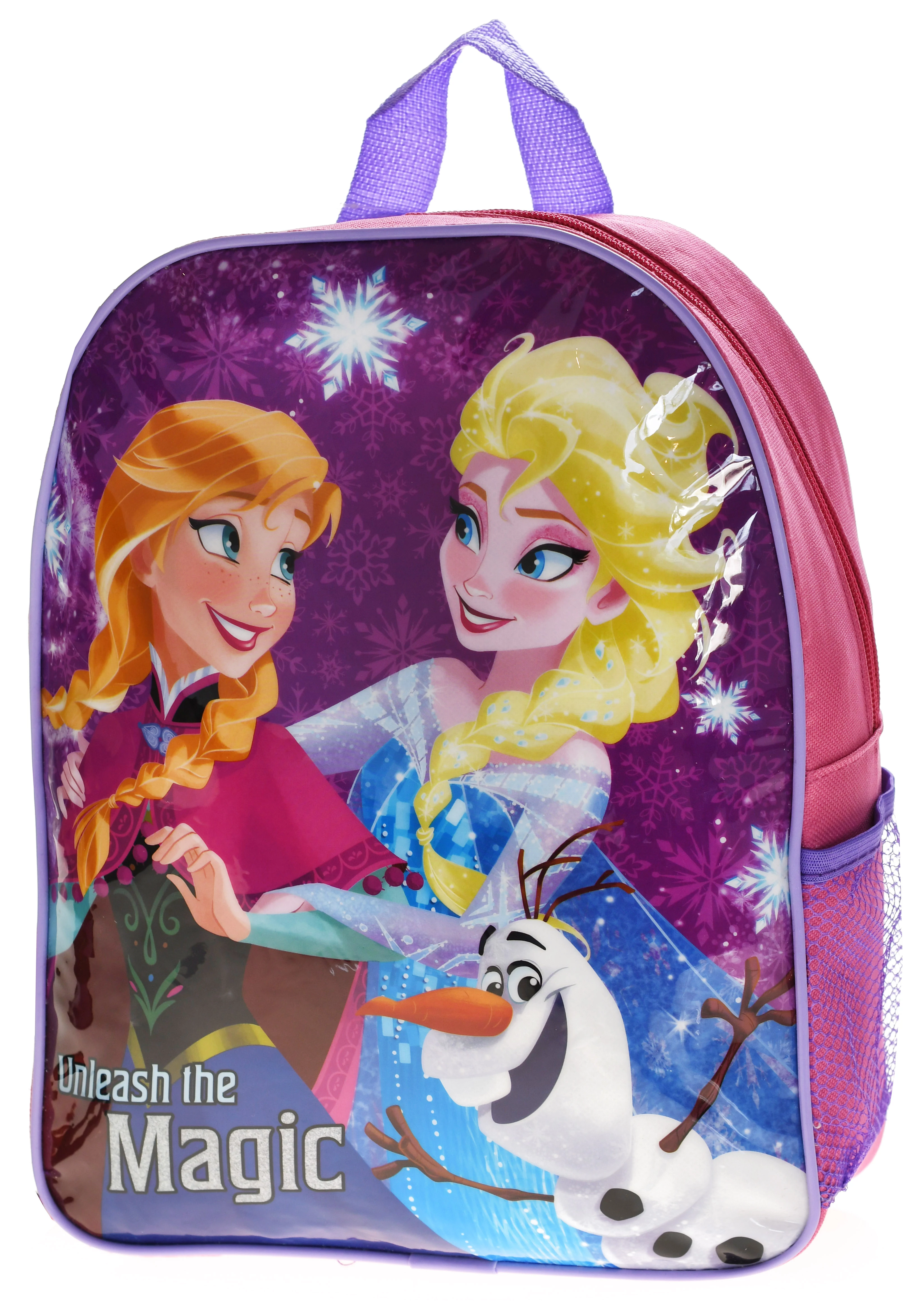 - medium-sized Frozen bag - high quality - massive, durable - one comparment with zip closure - adjustable shoulder straps - featuring characters from the Frozen; Elsa, Anna and Olaf Excellent choice for kids!