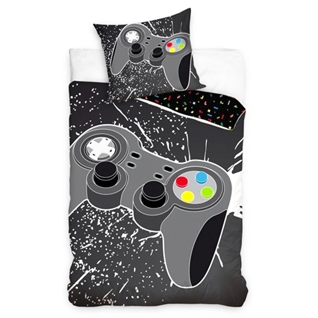 Pihe-puha kényelmes pamut ágyneműhuzatba belehuppani olyan mint egy álom egy fárasztó kockulás, lan-party-t követően! Még a legelhivatottabb konzolsoknak is jár az édes pihenés. Eleje szürke alapon a játékkonzol kontrollere látható, másik oldalán fekete alapon színes Tetris alakzatok.