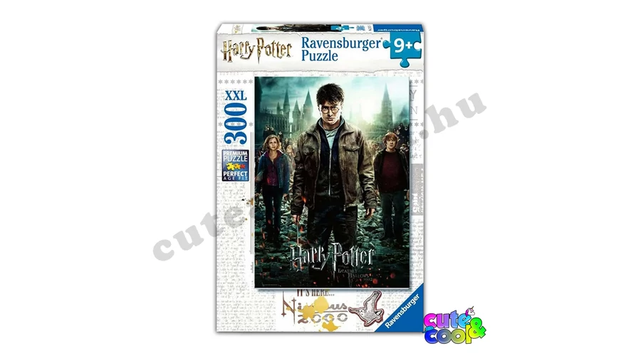 Minőségi Harry Potter Halál Ereklyéi kirakós a Ravensburgertől. Harry Potter oldalán Hermione és Ron a Roxfort iskola elött. A 300 db-os puzzle jó szórakozás egy esős napon egy Harry Potter rajongónak!