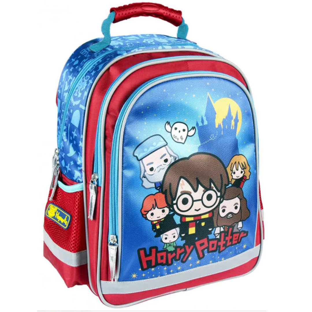 - big-sized Harry Potter school bag - ergonomic design - premium quality - massive, durable, reliable - 3 compartments with zip closure - water bottle mesh pockets on the sides - ergonomic, breathable padded back - adjustable padded shoulder straps - strong handle Excellent choice for elementary school!