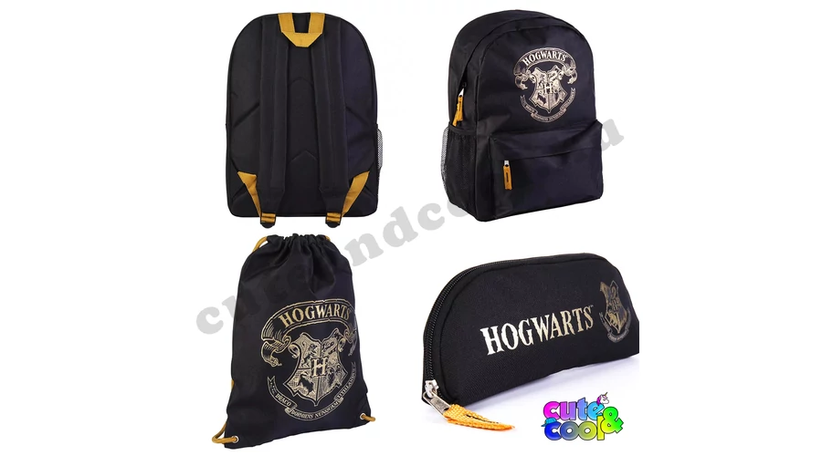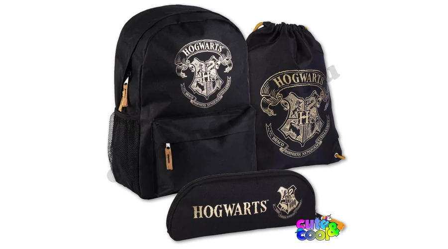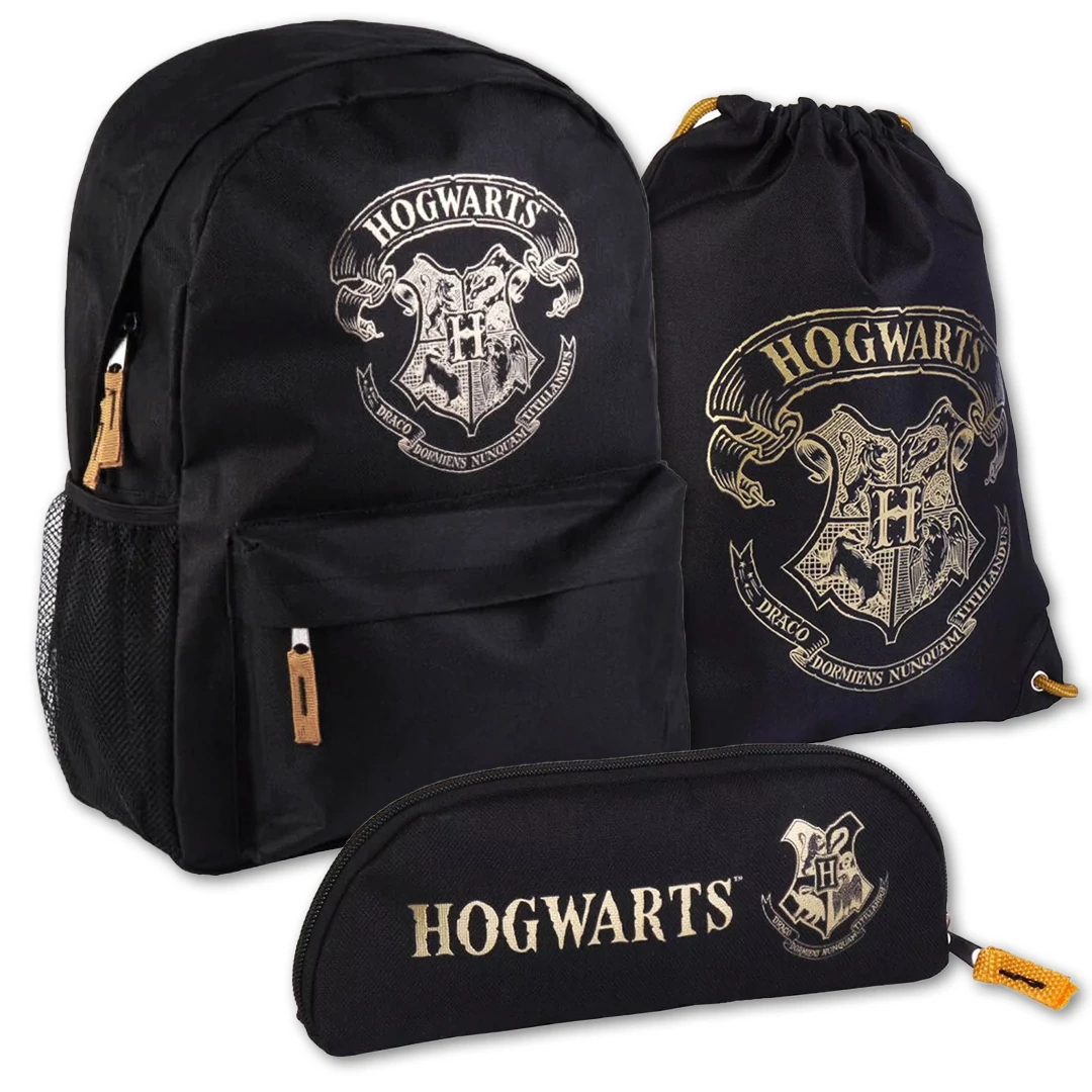 Harry Potter-es iskolatáska szett, ami 3 darabból áll, egy nagyméretű iskolatáskából, egy erős tornazsákból és egy tolltartóból. Mindegyik fekete alap színű, rajta az arany színű Roxfort Varázslóiskola címerrel ("Sohase csiklandozz alvó sárkányt" - áll latin nyelven a Roxfort címerében.) . Az iskolatáska 40 x 28 x 13 cm-es, elfér benne minden tankönyved. Egy cipzáros főrekesze és egy cipzáros elülső zsebe van, oldalán egy gumis, hálós zseb van. A táska anyaga erősebb poliészter, a táska háta vékonyan párnázott, vállpántjai állíthatóak. A tökéletesen passzoló tornazsák 39 x 30 cm nagyságú, kimondottan erős anyagú és vastag zsinórral rendelkezik. A tolltartó egyszerű, cipzáros zárású ahova a legszükségesebb írószereidet helyzheted. Invito iskolatáska szett!!!