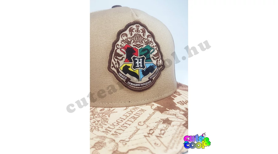 - Featuring Hogwarts logo from World of Wizards - Style: Snapback (flat slit) - Materials: 100% polyester - Size: S-M, 54 cm head circumference - adjustable - Color: biege Officially licensed product
