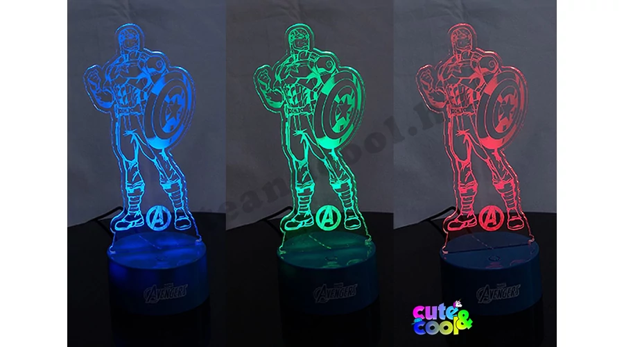 - Marvel Comics led lamp - high quality - 7 changeable color - featuring Captain America with his Shield - 3 AA batteries or Mini USB (supplied) - color: blue