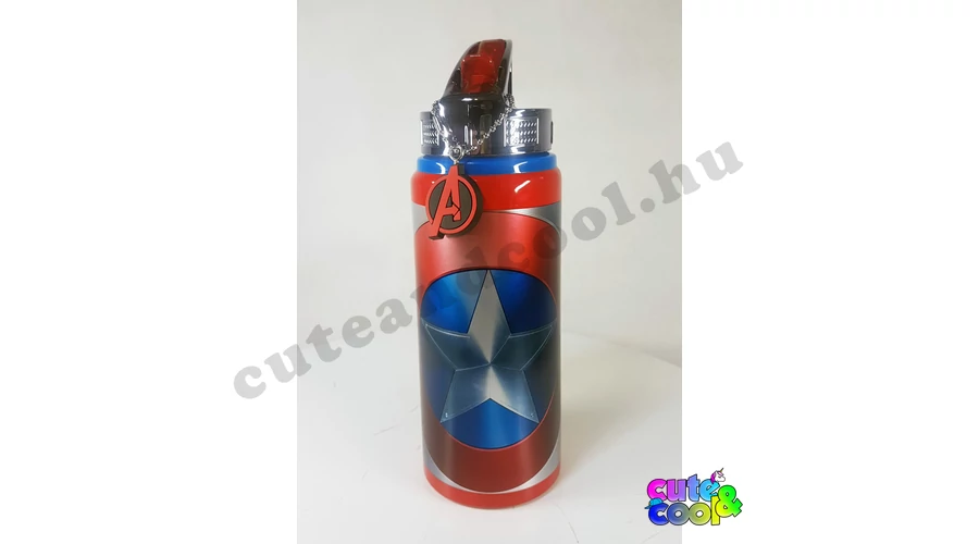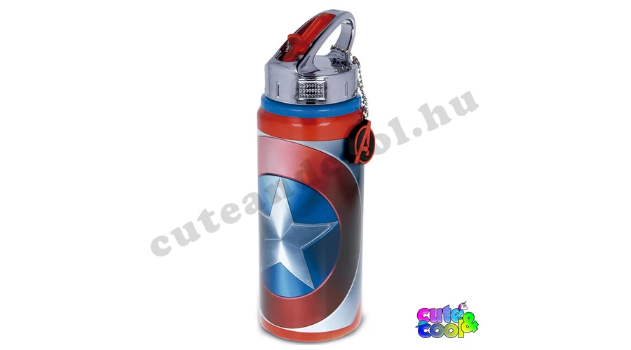 - premium quality - massive, durable - lockable - water bottle doesn't leak - featuring Shield of Captain America - color: red, steel Size: 710 ml Material: aluminum, BPA-free plastic Officially licensed Minecraft