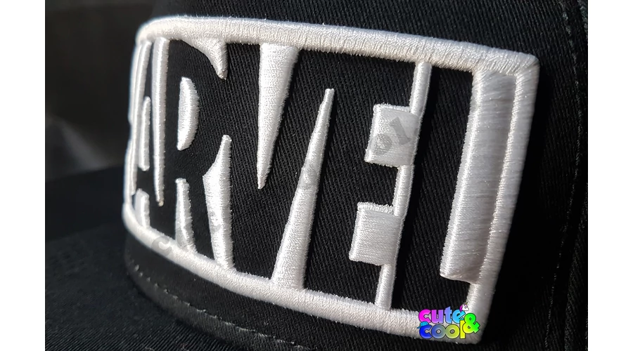 - Marvel snapback cap for Marvel fan - 3d inscription - Style: Snapback (flat slit) - Materials: 83% cotton, 17% polyester - Size: S-M, 58 cm head circumference - adjustable - Color: black Gift idea for Marvel Universe fans, boys, girls, for birthday, name day, summer holiday Officially licensed product
