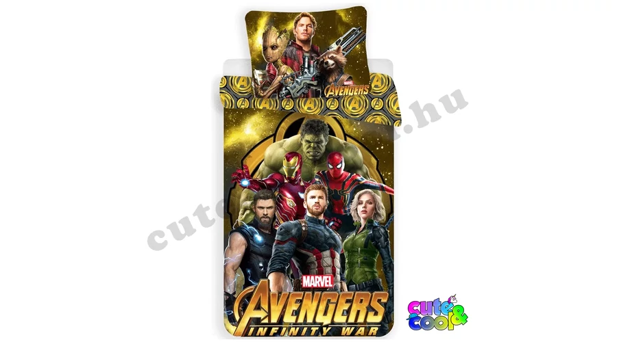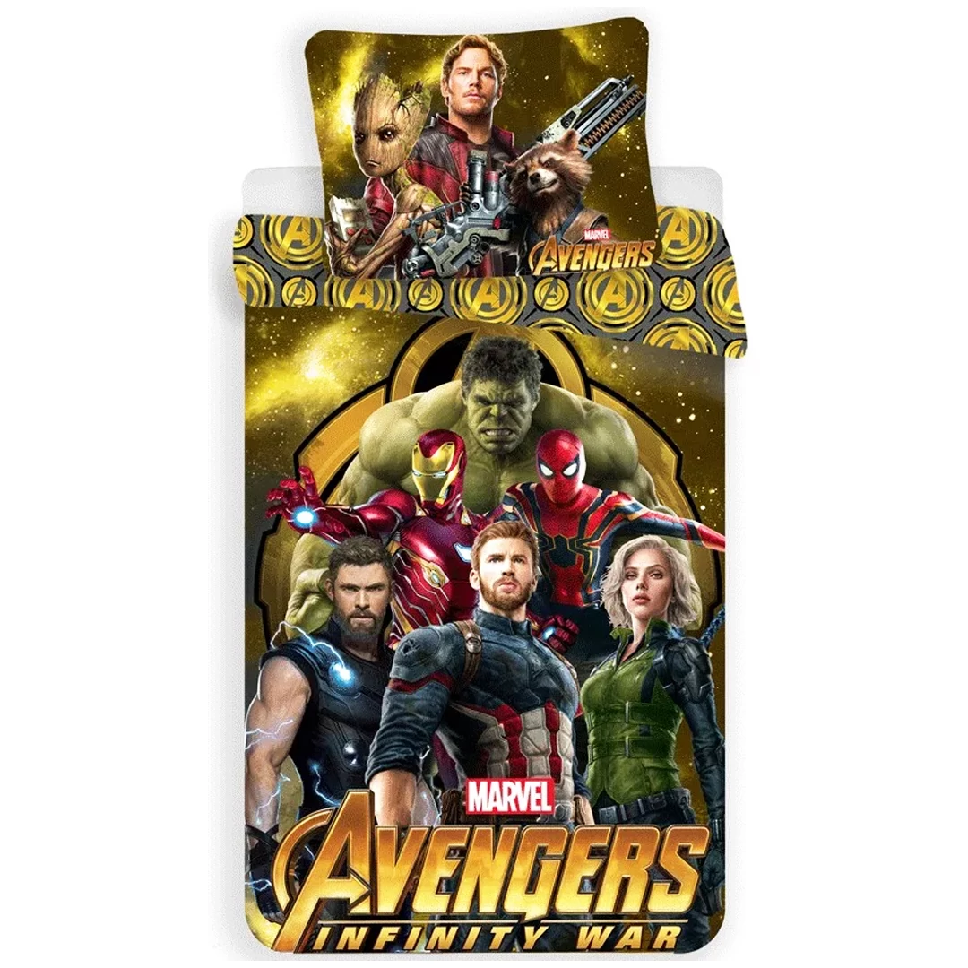 Bosszúállók Végtelen Háború film jó főszereplői elevenednek meg ezen a nagyon szép ágyneműhuzaton. Az arany-barna színű pamut ágynemű igazán feltudja dobni a szobát egy Marvel univerzum rajongó számára!