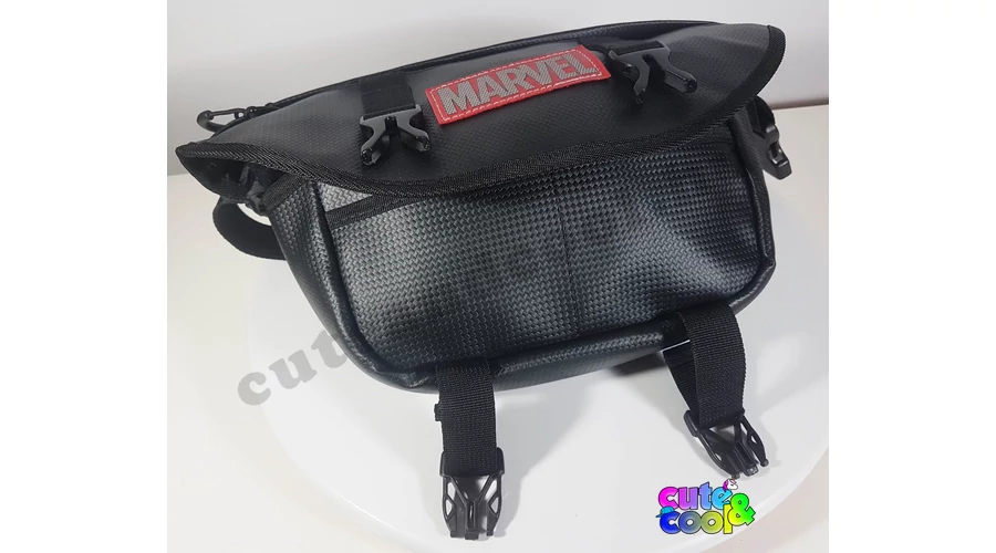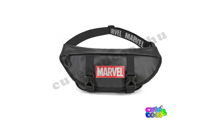 Igazi Marvel rajongónak való övtáska! A fekete alapon kiemelkedő Marvel logó nagyon menő kinézetet kölcsönöz neki. A két nagy, erős csatt biztonságba tartja az elülső cipzáros zsebet. A derékszíj állítható, erős, megbizható csattal.