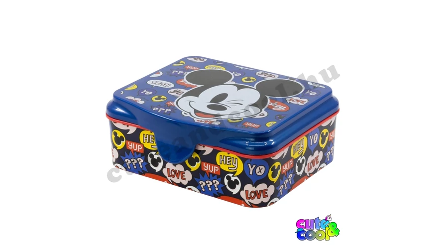 Mickey egérrel díszített műanyag ételtartó egy remek megoldás az iskolába vinni az ételt. A szendvicses doboz kényelmesen belefér a táskába mert 15x13,5x6 cm méretű, könnyen tisztítható és zárható.
