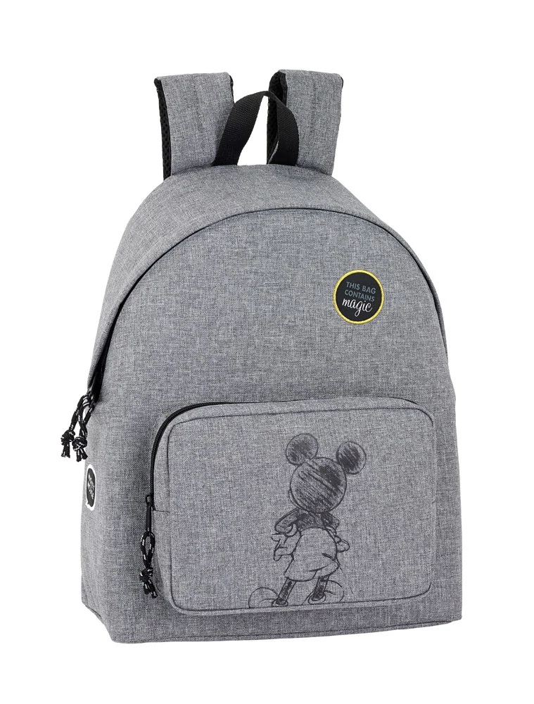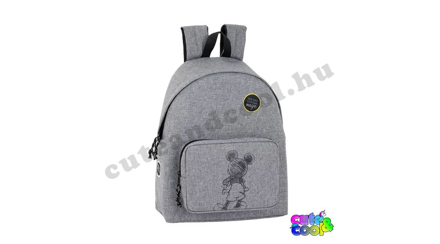Kiváló minőségű trendi grafitszürke Mickey hátizsák. Egyterű, elején nagy cipzáros zseb Mickey Mouse sziluettjével. Párnázott hátsó rész, állítható és párnázott vállpántok a kényelmes viselet érdekében.