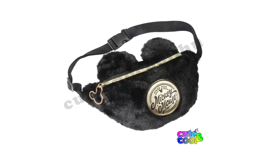 Trendi, divatos fekete plüss Mickey Mouse övtáska ikonikus fülekkel, Mickey fejét formázó cipzár behúzóval. Tökéletes választás bármilyen alkalomra.