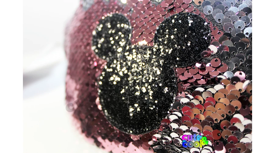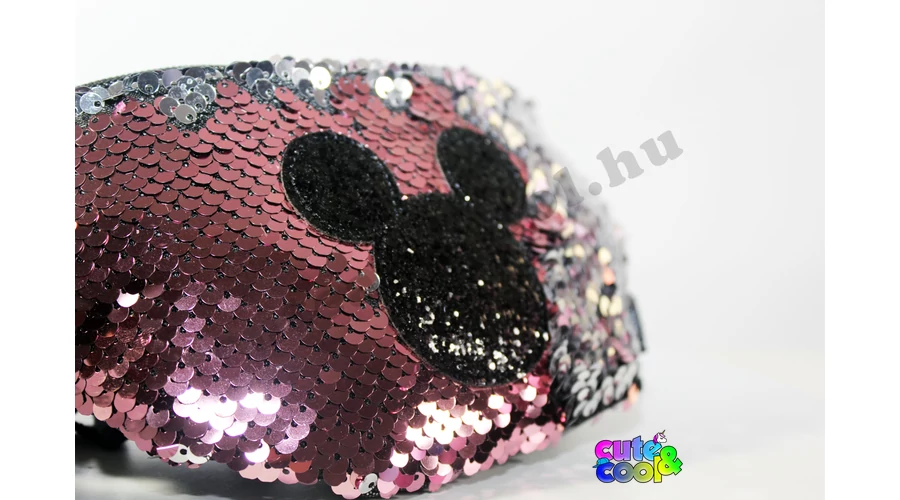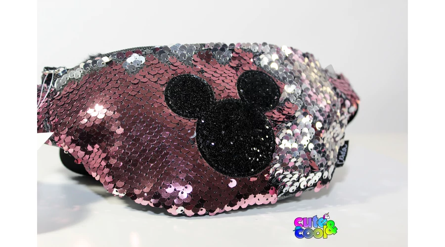 Különleges simi flitteres Mickey Mouse övtáska ikonikus Mickey fülekkel díszítve, tökéletes választás, ha csak kevés dolgot akarsz magaddal vinni.