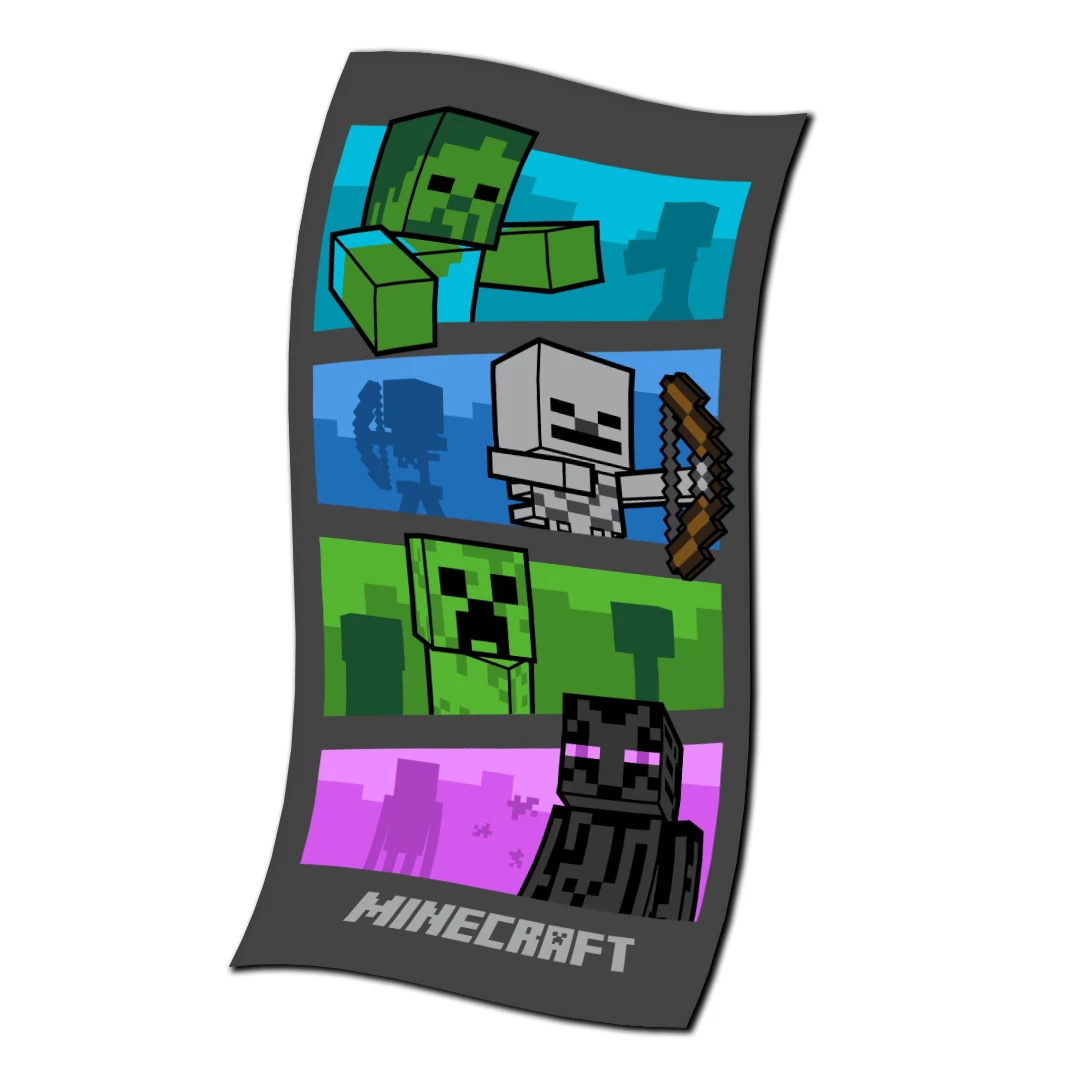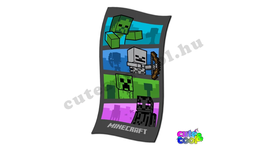 Legyen tiéd ez a vagány, hivatalos Minecraftos törülköző. A Minecraft legismerterbb szörnyei a Creeper, zombi, csonit és Enderman szerepülenek rajta. A mérete egy gyermek számára tökéletesen megfelelő 70 x 140 cm-es, anyaga jó nedvszívó pamut. Strandra, iskolai uszás utánra kíváló választás egy Minecraft rajongó gyerkőcnek!