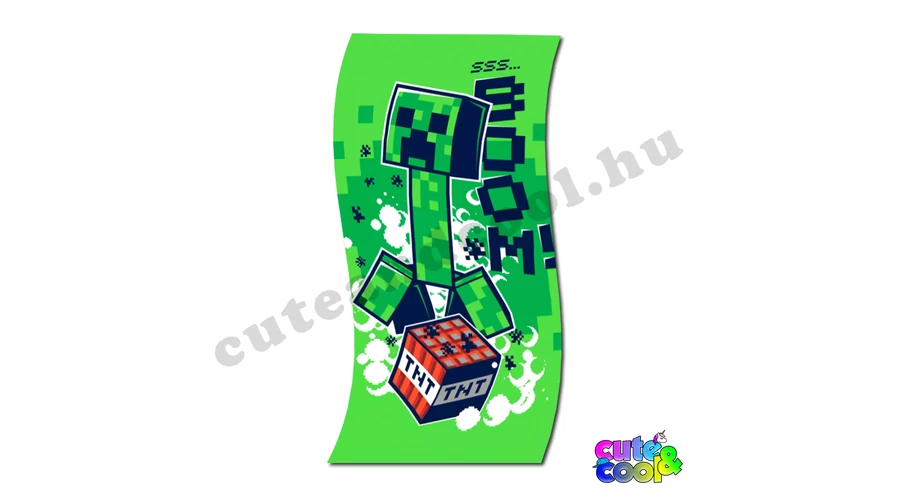 Legyen tiéd ez a vagány, hivatalos Minecraftos törülköző. A Minecraft világában a zöld robbanó szörny a Creeper, erre utal is a Boom felirat és a TNT blokk is ezen a finomtapintású, minőségi strandlepedőn. A mérete egy gyermek számára tökéletesen megfelelő 70 x 140 cm-es, anyaga jó nedvszívó pamut. Strandra, iskolai uszás utánra kíváló választás egy Minecraft rajongó gyerkőcnek!