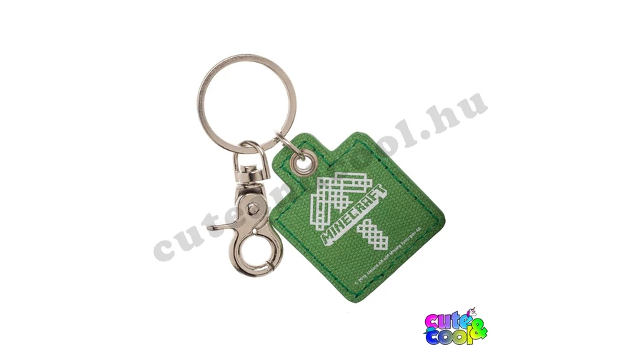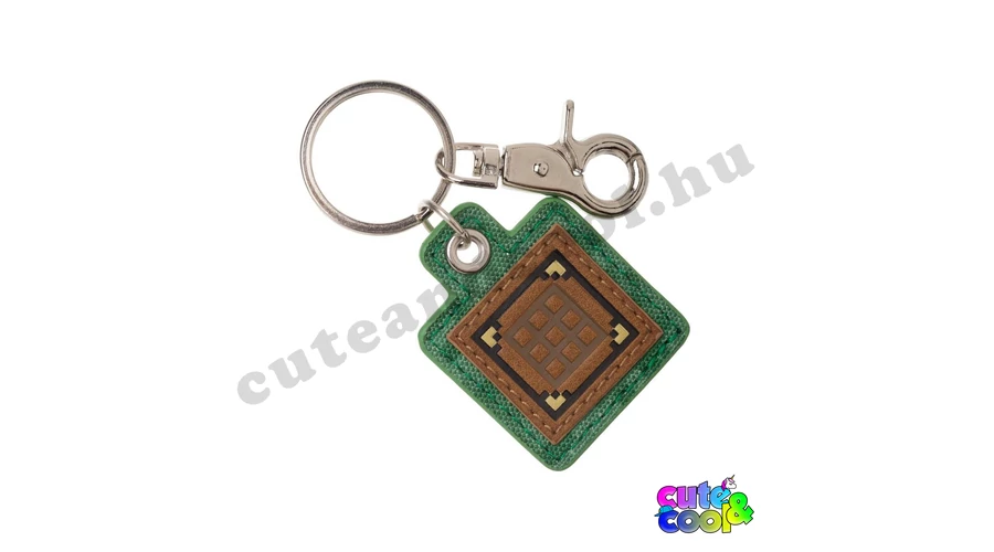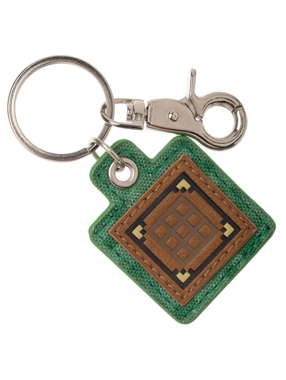 The keychain is a Minecraft craft table pattern made of metal and Pu