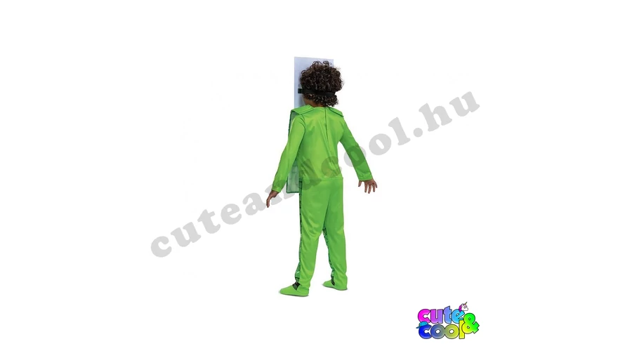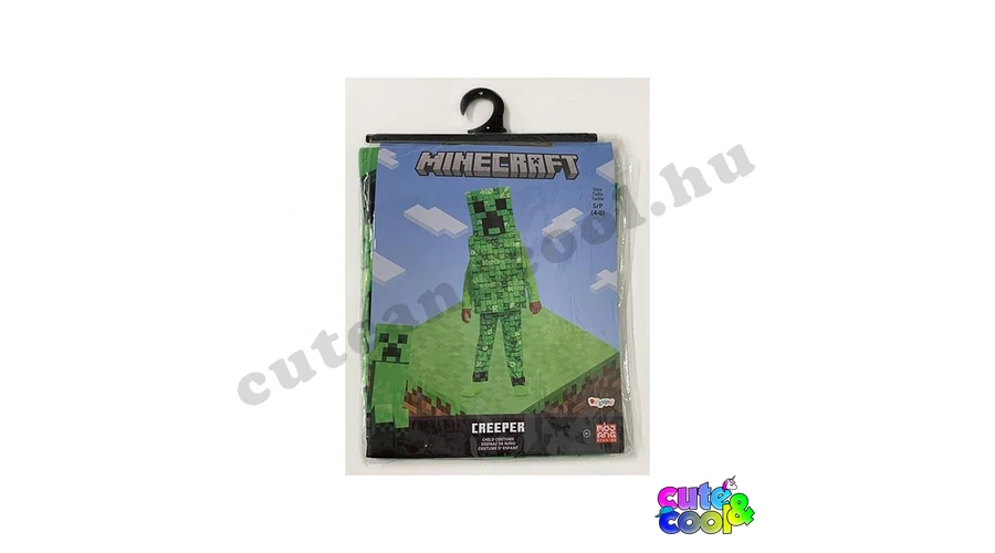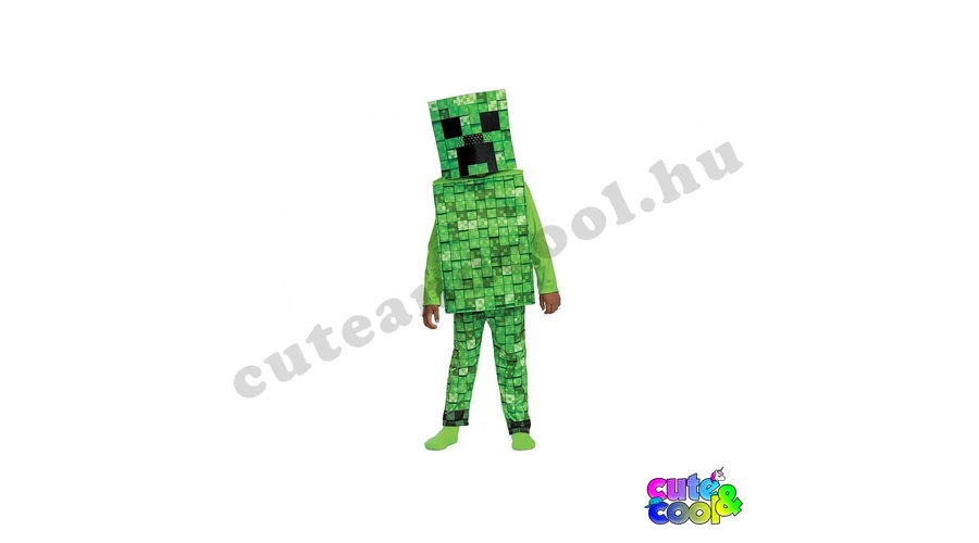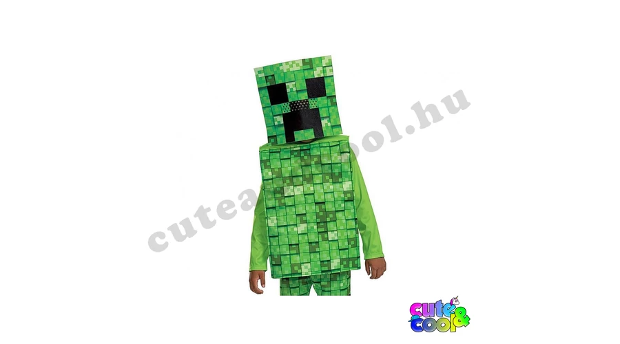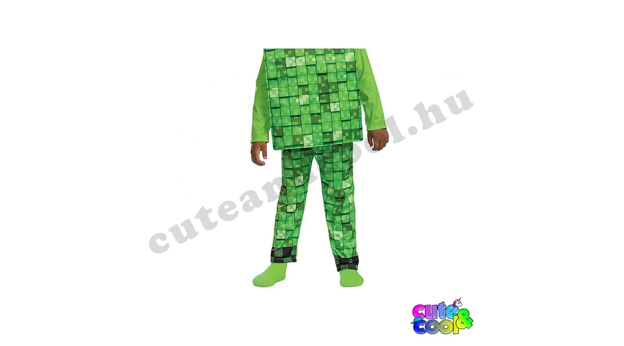 Legyél te a rettegett Creeper! Most lehetőséged van rá, hogy sziszegéssel te ijesztgess másokat. A Creeper jelmez tökéletes választás egy rajongónak Farsangkor. A pixeles, kockás stílusú zöld kezeslábasra tépőzárral kapcsolódik egy elülső mellrész, ami habszivacsból van. Ez a szintén zöld és pixeles rész adja meg a "kocka" alakod, amit egy 23 x 23 cm-es könnyű maszkkal egészíthetsz ki. A Creeper arca, mint a maszk gumipánttal vehető fel, szeménél fekete rácsos, hogy minnél sötétebbnek tűnjön a szem. A Minecraftos jelmezcsomag tartalmazza a kezeslábast, a tépőzáras habszivacs "testet" és a maszkot. (zoknit nem)