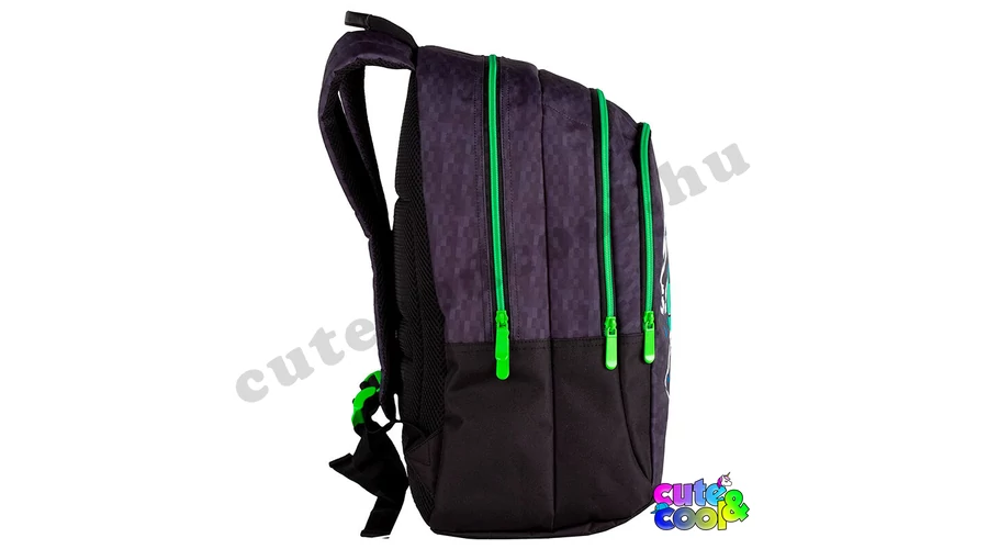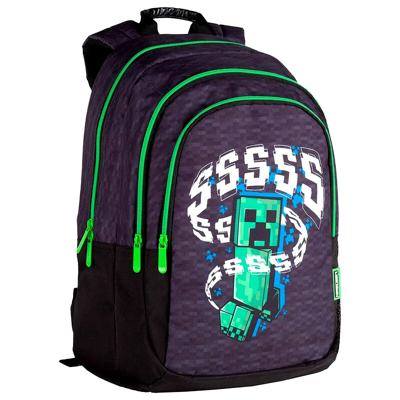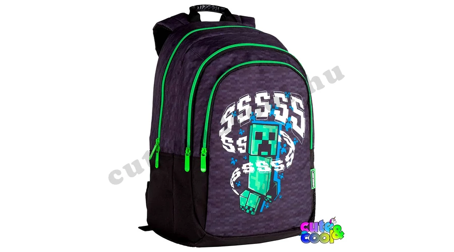 - big-sized Minecraft school bag - premium quality - massive, durable - 3 compartments with zip closure - waterbottle pockets on the sides - breathable, padded back - adjustable padded shoulder straps - strong handle - featuring Creeper from the famous video games, Minecraft Excellent choice for school!