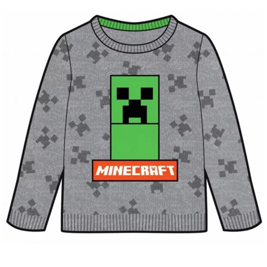 Minecraft Creeper szürke kötött gyerek pulóver