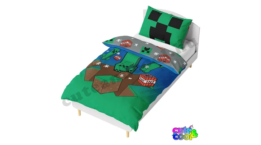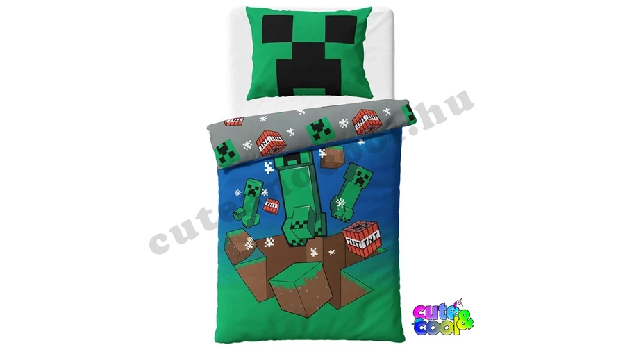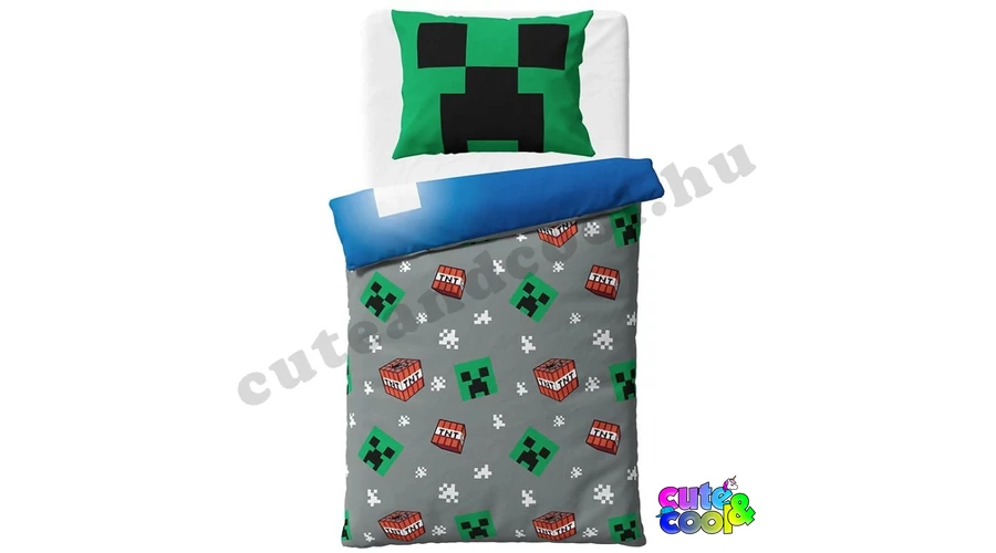 Ezen a minőségi puha pamut ágyneműhuzaton őket és a TNT blokkokat láthatod. Az egyszemélyes gyerek ágyneműhuzat másik oldalán másik minta látható, a szürke alapon szintén Creeper és a TNT blokkok. Remek választás egy Minecraft rajongó számára!