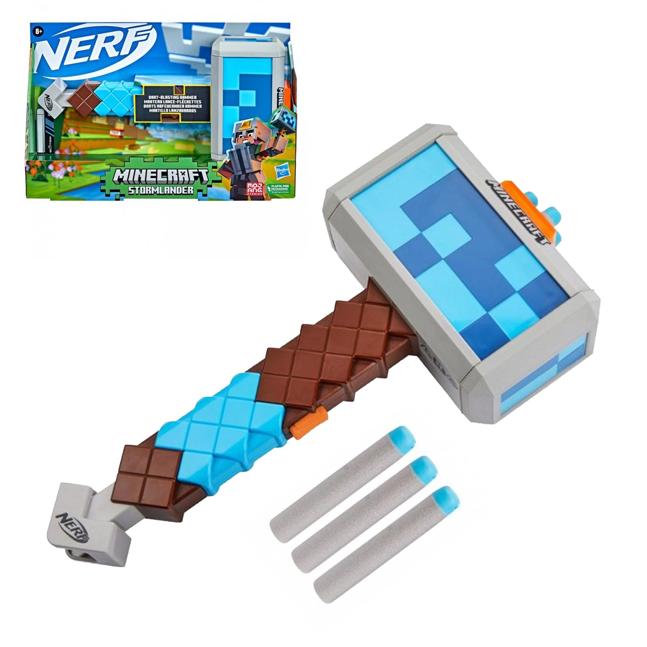 A NERF és a MINECRAFT kombinációjaként új fegyver érkezett a Nerf csatáidhoz! A Nerf minőségi szivacslövedékes fegyvere most a Minecraft Dungeons egyik brutális kalapácsát formázta meg. Ez az izgalmas fegyver lehetővé teszi, hogy valódi Minecraft kalandokba keveredjünk. A Stormlander egyedi megjelenése és részletei valósághűen idézik meg a Minecraft Dungeons ikonikus stílusát. Töltsd be a lövedéket ( 3db tartozék), egy könnyed mozdulattal húzd fel, és tartsd célra! A habdartsokat egyesével, felhúzásonként lehet kilőni. A Nerf Minecraft Kalapács 3 hivatalos Nerf Elite habdartsot tartalmaz, amelyeket teszteltek és jóváhagytak a teljesítmény és a minőség szempontjából, és kiválóan alkalmasak beltéri és kültéri Nerf csatákra. A 34cm-es Minecraft Nerf kalapács szélei szivacsozottak, hogy minnél biztonságosabb legyen a használata.