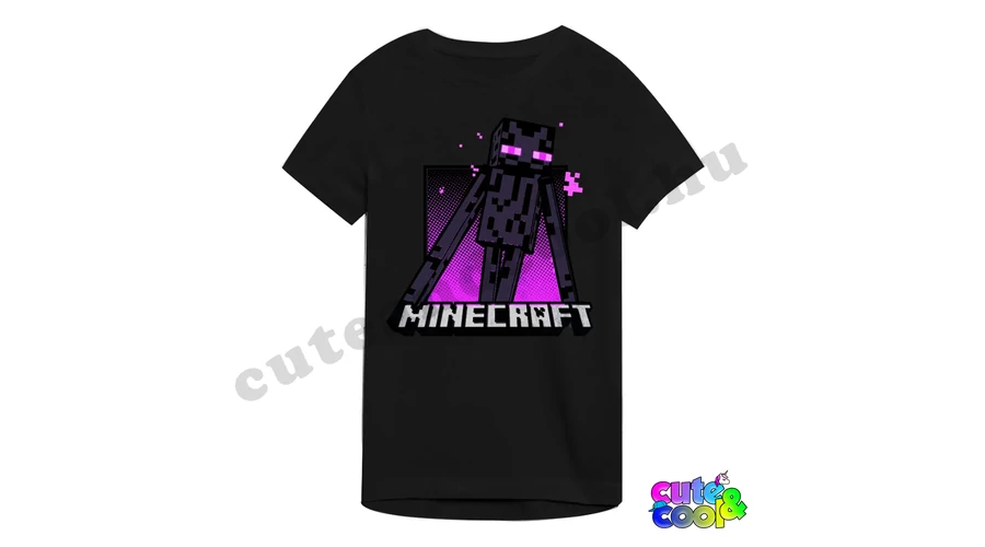 Kényelmes rövid ujjú Minecraftos póló a jól ismert Enderman (magyarul: Bevégző) figurával. A fekete póló alapon az Enderman mögött a lila színű END látható, alatta a Minecraft hivatalos logója látható. A felső anyaga puha és minőségi pamut. Szuper választás a mindennapokra!