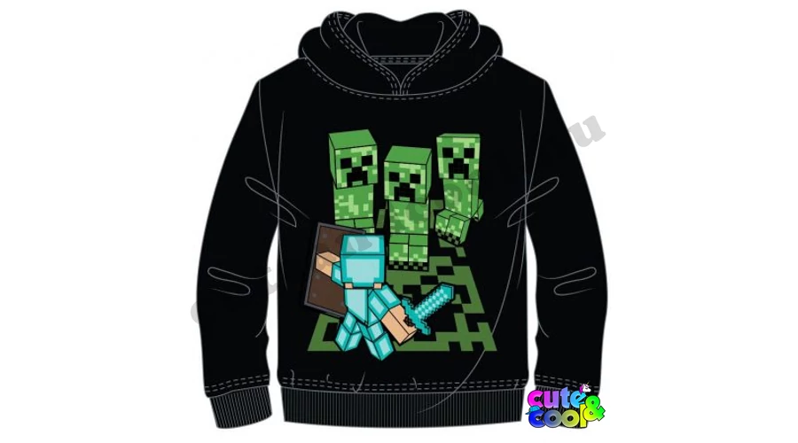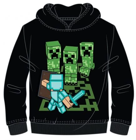 Fekete kapucnis pulcsi, hasán a Minecraft hősünk Steve harcol három robbanékony Creeper-el.