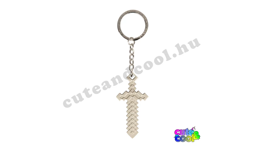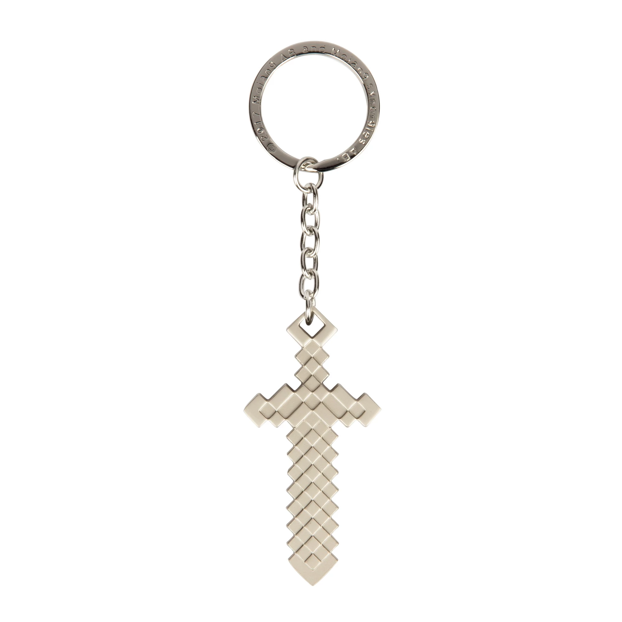 The keychain is a Minecraft iron Sword pattern made of metal.