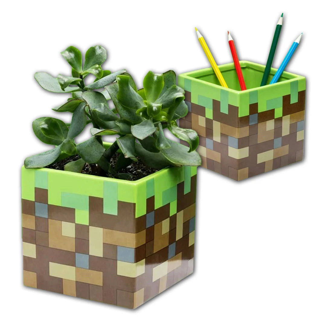 Minecraft Fűblokk kerámia virágtartó virágcserép asztali írószertartó