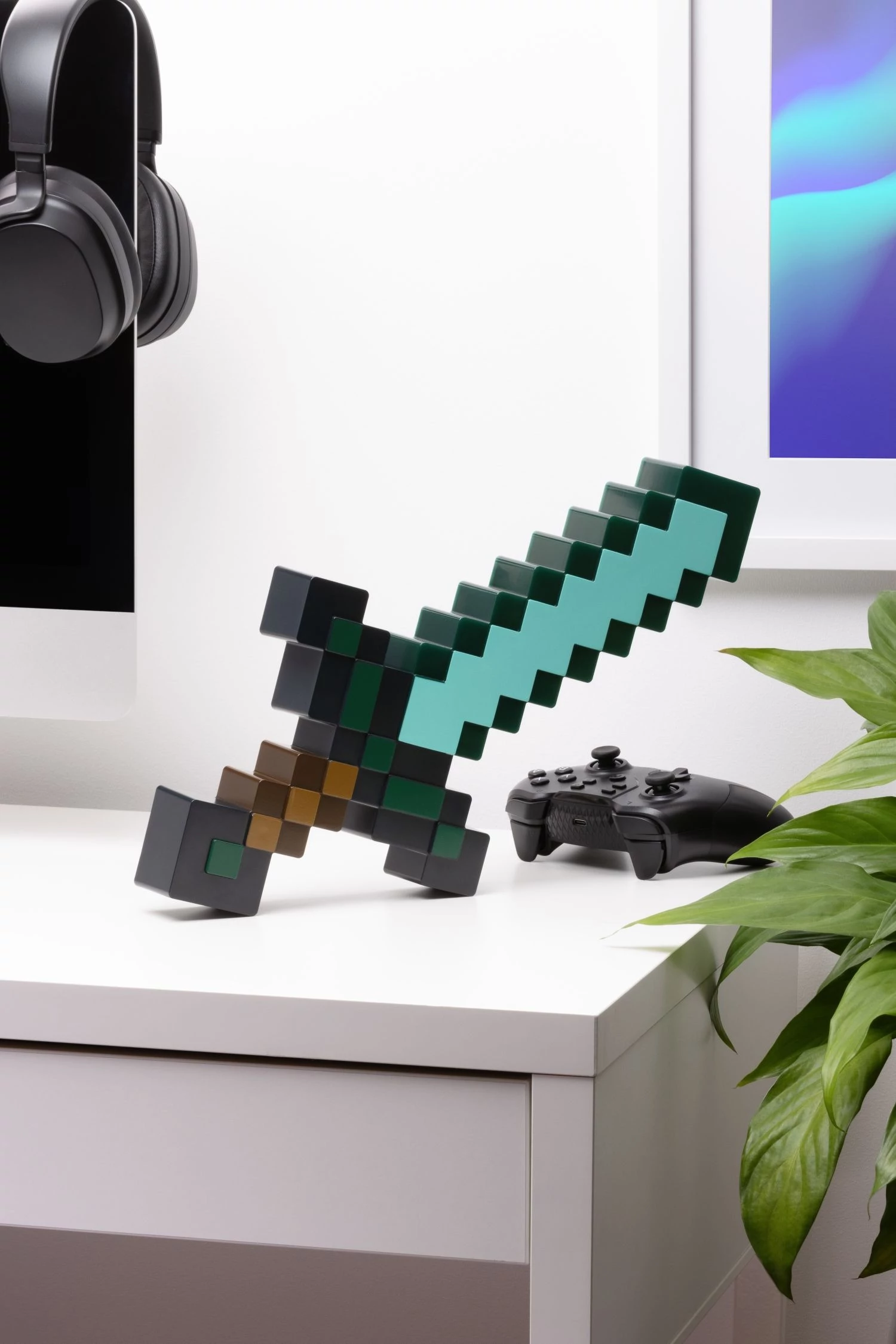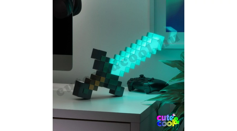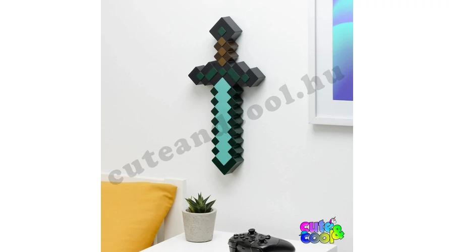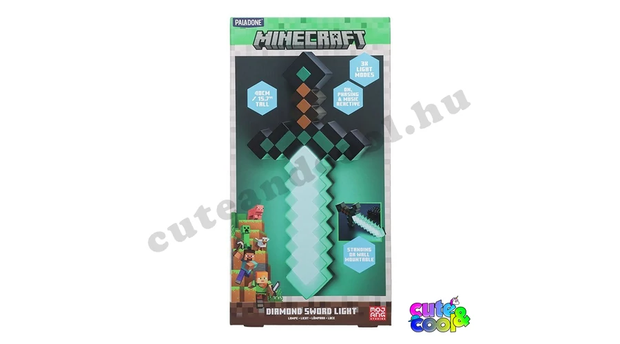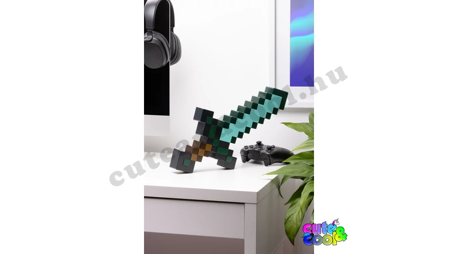 Minecraft gyémánt kard , amely a játék a legnépszerűbb fegyverének számít. A gyémánt színű penge és keresztvas, a barna színű fára utaló markolat egy az egyben megegyezik a Minecraft videójátékban lévő karddal, hogy a játékosok valódi Minecraft élményt kaphassanak. A mérete is kellőképpen impozáns, 40 cm hosszú és ami extra benne, hogy ez egy lámpa. Bemutatkozik a hivatalosan licencelt Minecraft Diamond Sword 3D lámpa, amely tökéletesen életre kelti a játékból ismert "Gyémántkardot". A játékban a kard közelharci fegyverként szolgál, elsősorban lények és játékosok sebzésére, valamint hatékony eszköz a pókhálók irtására is. A Diamond Sword alakú lámpa 40 cm hosszú és 15,7 cm széles, 3 db AAA elemmel (nem tartozék) vagy USB-kábellel működik. Három beépített világítási móddal rendelkezik, beleértve az állandó fényerőt és a fokozatosan erősödő/halványuló fényerőt. Hordhatod zseblámpaként, utánozva a játék szereplőit, vagy önállóan vagy falra szerelve is kiállíthatod. Ez a lámpa egyedi, pixeles hangulatot kölcsönöz otthonodnak, felidézve a gyermekkor örömteli pillanatait! Ideális személyes használatra vagy tökéletes ajándéknak.