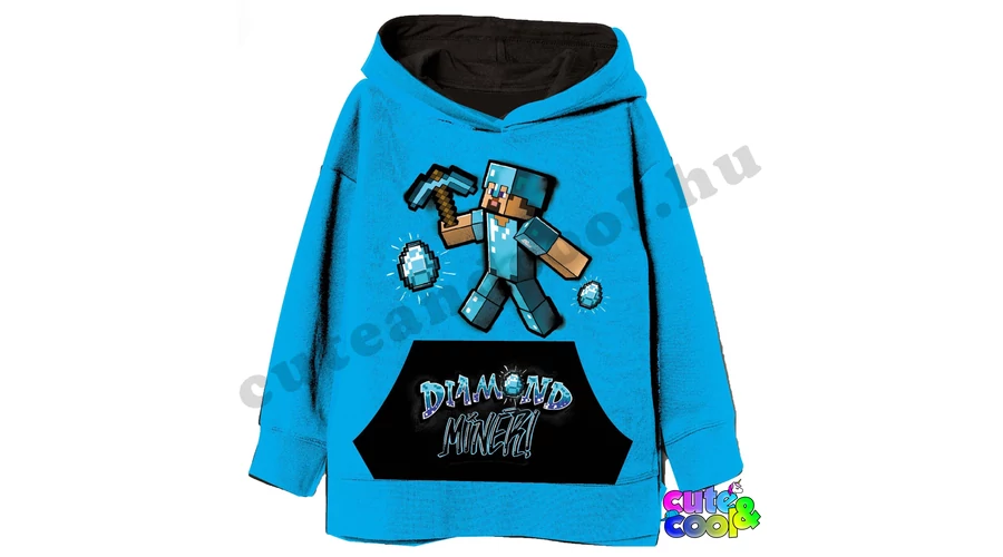 Minecraft gyémánt Steve kék kapucnis pulóver