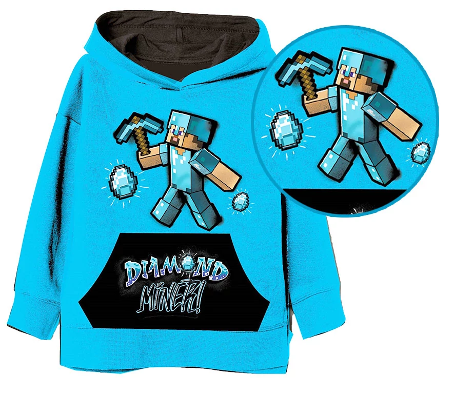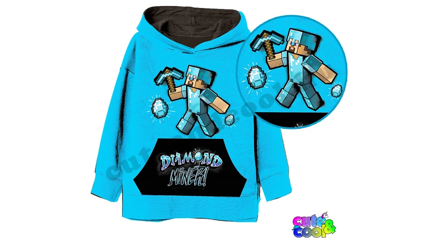 Minőségi Minecraftos gyerek kapucnis pulóver kenguruzsebbel a rajongóknak!