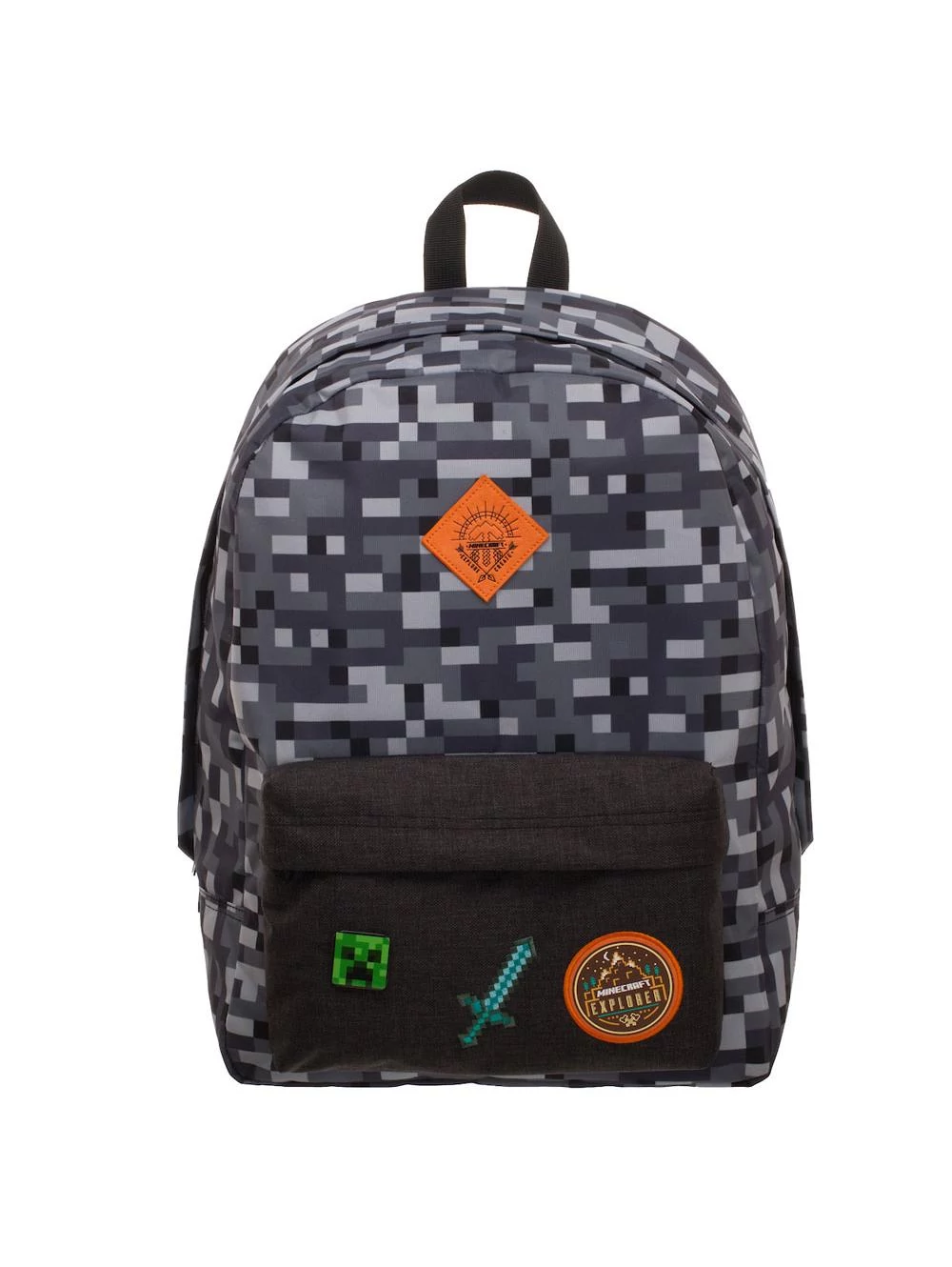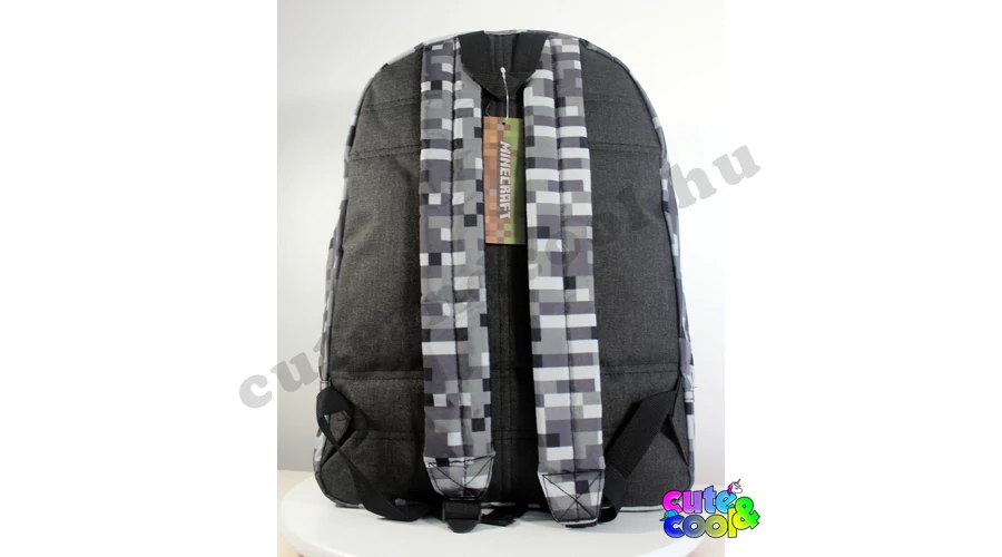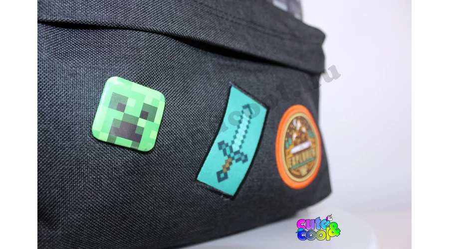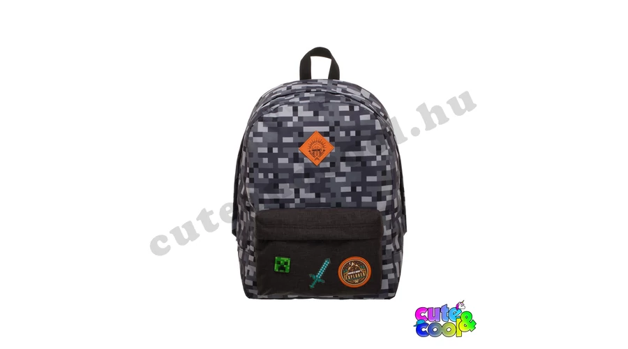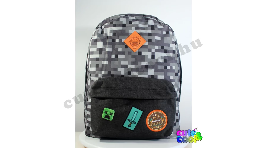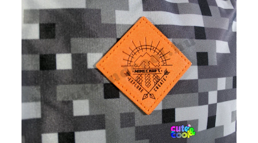 - big-sized Minecraft school bag - premium quality - cool camouflage design - simple, massive, durable - 2 comparments with zip closure - padded back - adjustable padded shoulder straps - strong handle - featuring icons from the famous video game: Creeper Sword and badges along with the official Minecraft logo