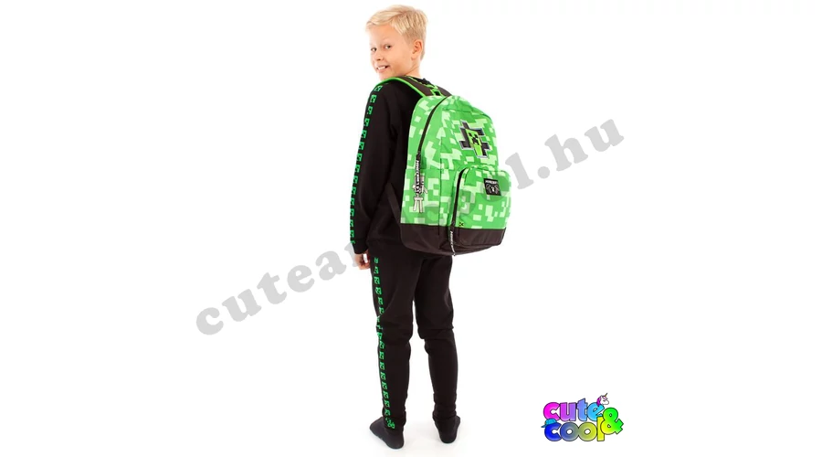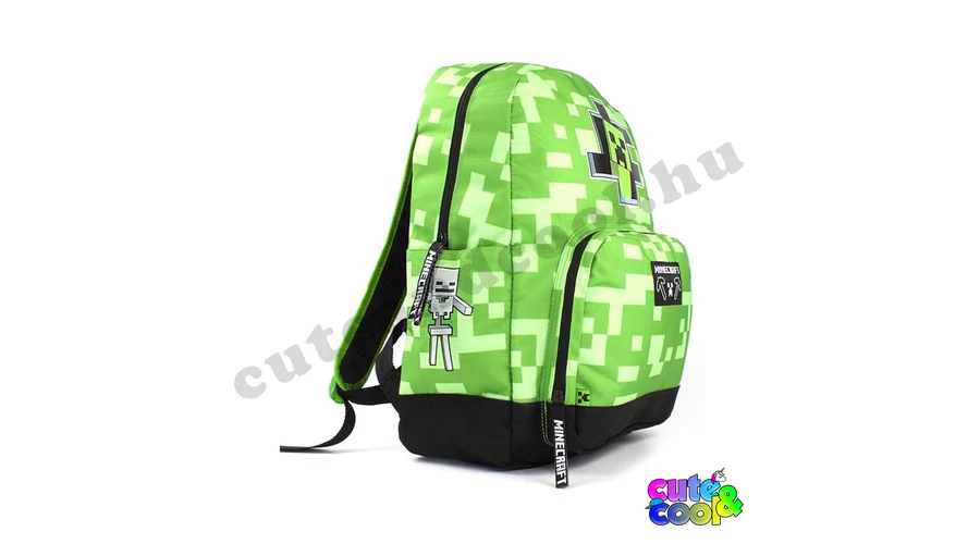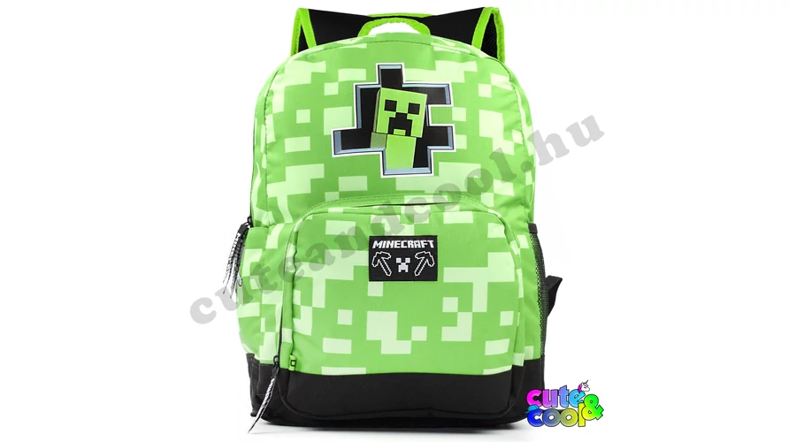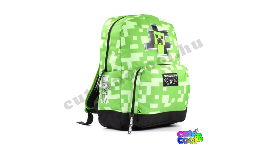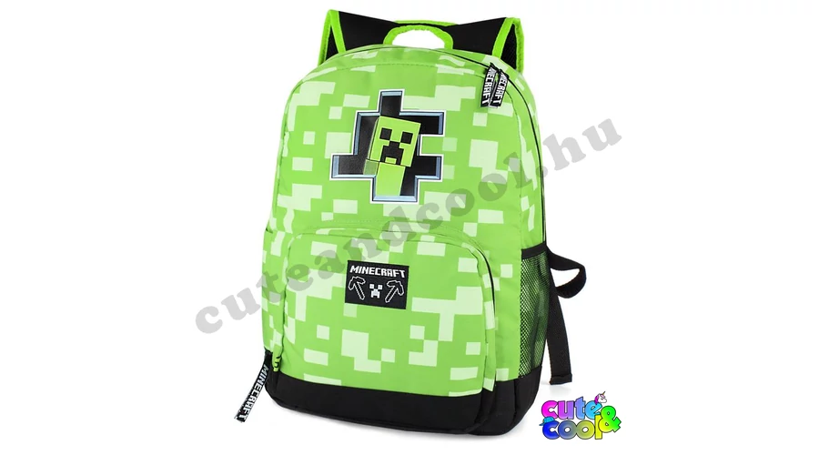 - big-sized Minecraft school bag - premium quality - massive, durable - 2 comparments with zip closure - main comparment divided - sides waterbottle pockets - padded back - adjustable padded shoulder straps - featuring characters from the famous video games: Creeper along with the official Minecraft logo Excellent choice for school!