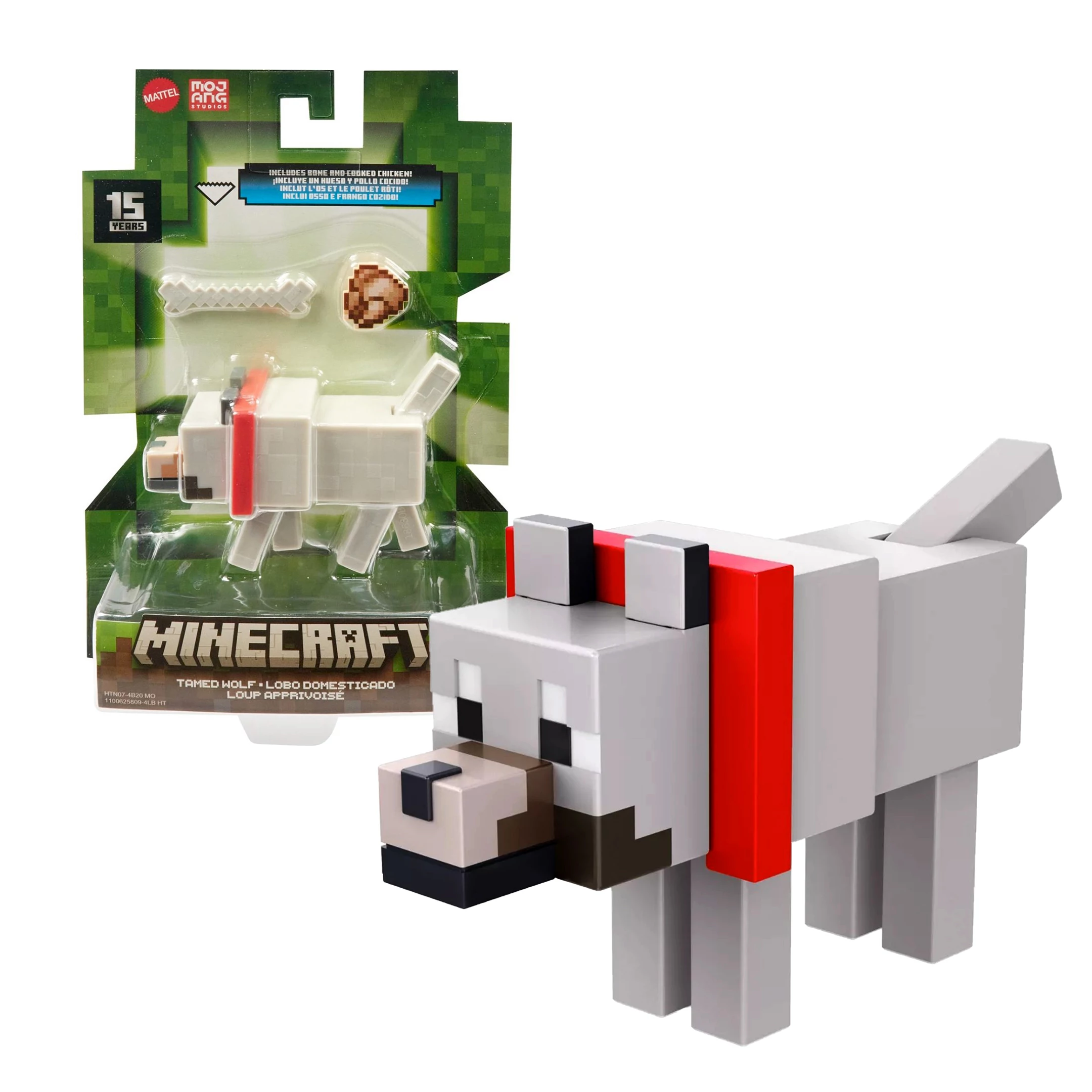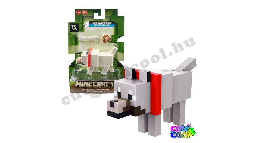 A hitelesen, pixelezett Minecraft kutyus műanyag játékfiguráért a rajongók odalesznek. A Minecraftban a farkasból szelidíthető, barátságos kutyává váló mob az egyik leghasznosabb élőlény, aki minden erejével védelmez téged. A játékfigura lábai, farka mozgatható, nyakörve levehető. A doboz tartalma a kutyus, egy sült csirke tárgy, illetve van még egy nagy obszidián blokk, - amit összerakva kirakhatod a Nether kaput - ha összegyűjtöd a többi különböző játékfigurát is.