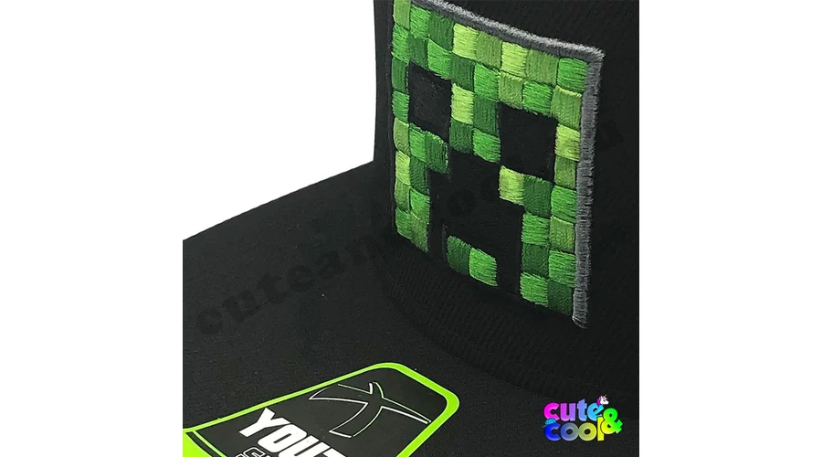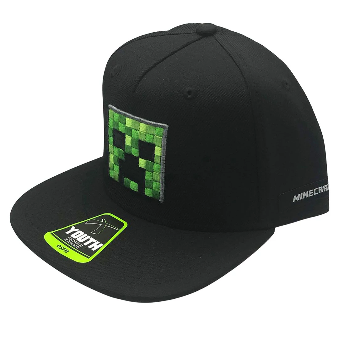 - Minecraft snapback for gamers - Mesh design for good ventilation - Style: Snapback (flat slit) - Materials: 100% cotton - Size: S-M - adjustable - Color: black Gift idea for Minecraft fans, boys, girls, for birthday, name day, summer holiday Officially licensed Minecraft