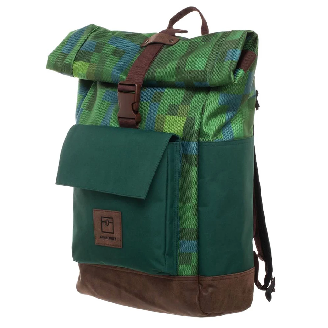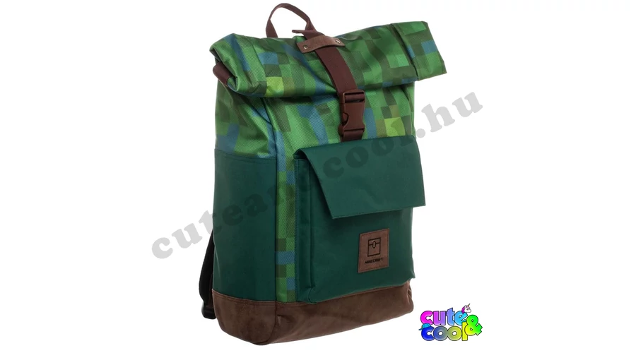 - large-scale rolltop Minecraft school bag - premium quality - massive, durable - 2 zipped comparments - side waterbottle pocket - padded backrest - adjustable padded shoulder straps - strong handle Excellent choice for school!